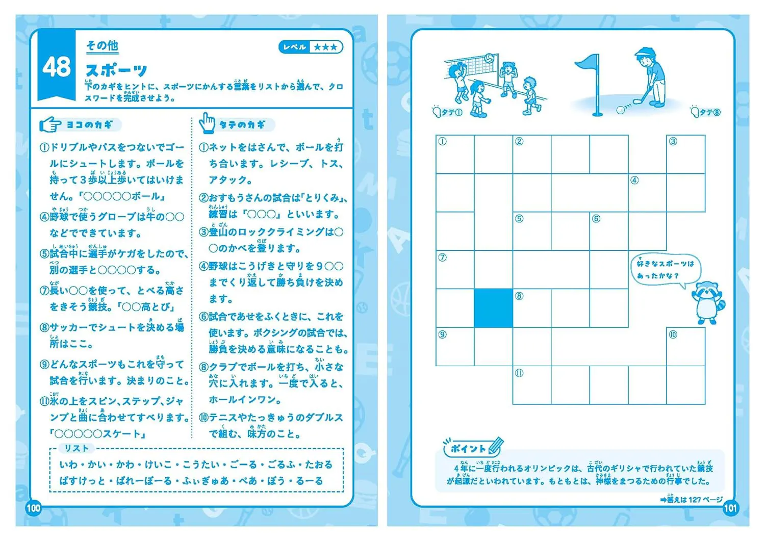 語彙だけでなく、小学生のうちに覚えておきたい重要事項も身につくクロスワード&パズル