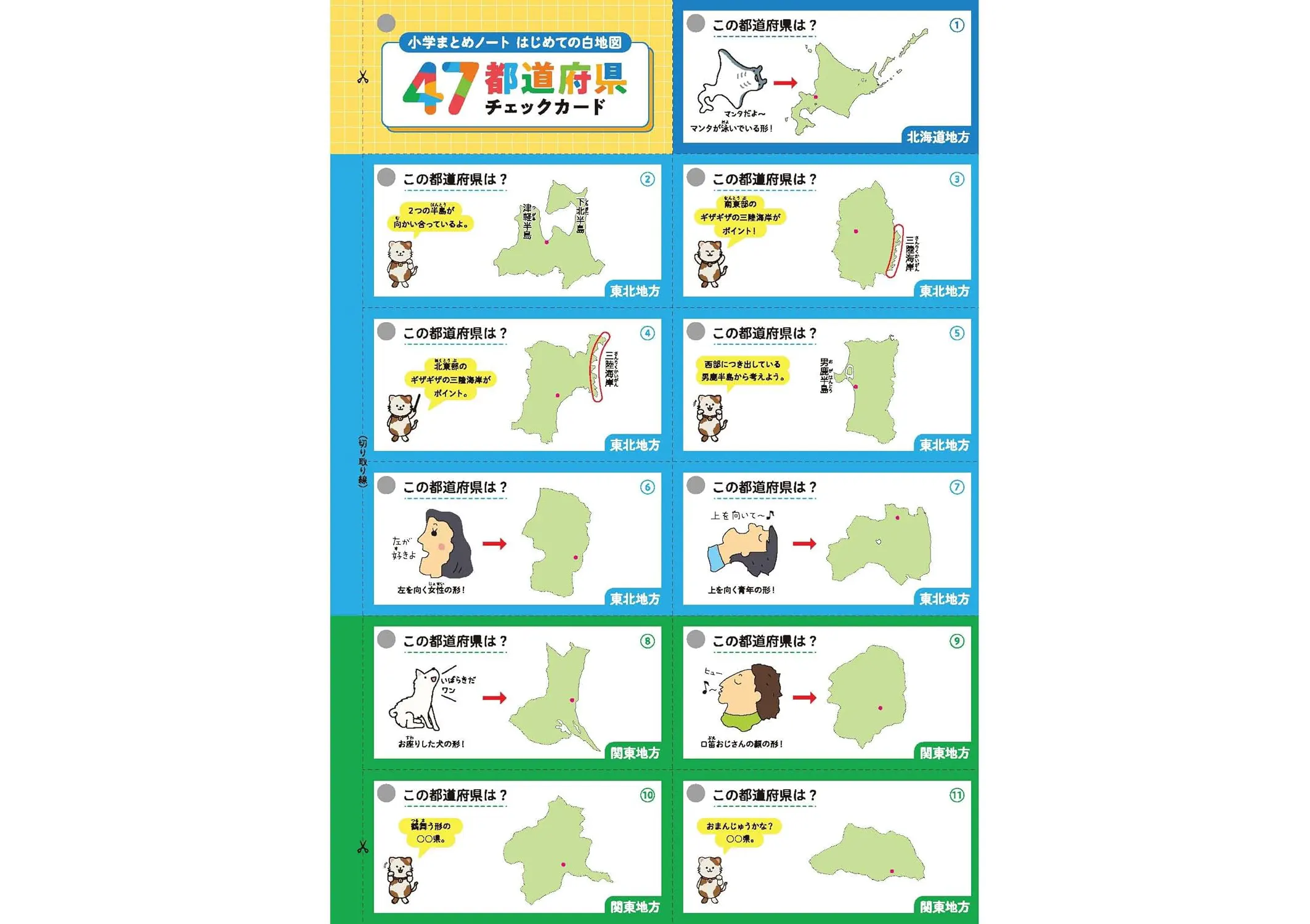 小学校で学ぶ47都道府県のようすを、イラスト満載の絵地図を使ってクイズに取り組みながら楽しく学ぶことができる参考書。