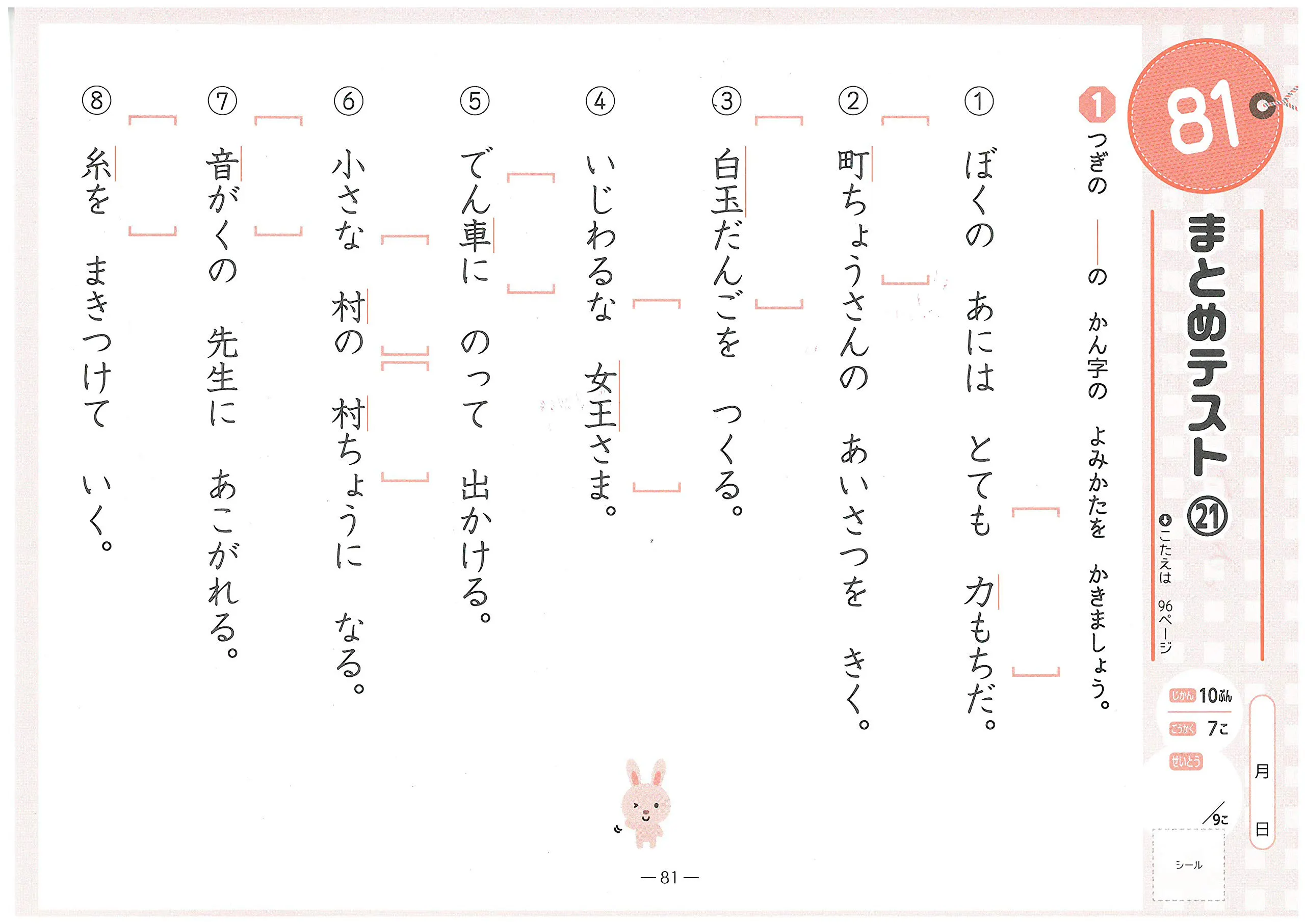 ○裏面の「かいてみよう」は,表面で学んだ漢字の書き取り問題です。