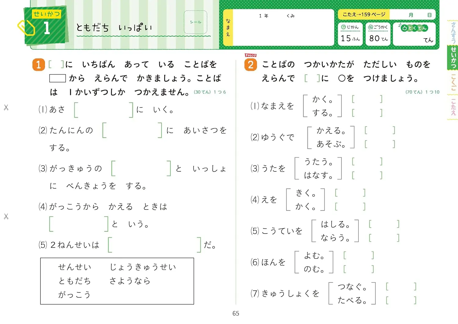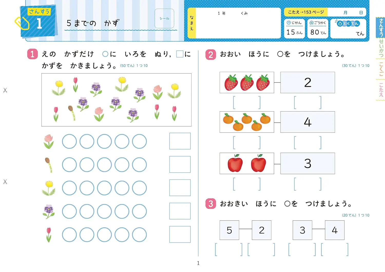 ・国語と算数では、少しレベルの高い「チャレンジ」問題も入っています。