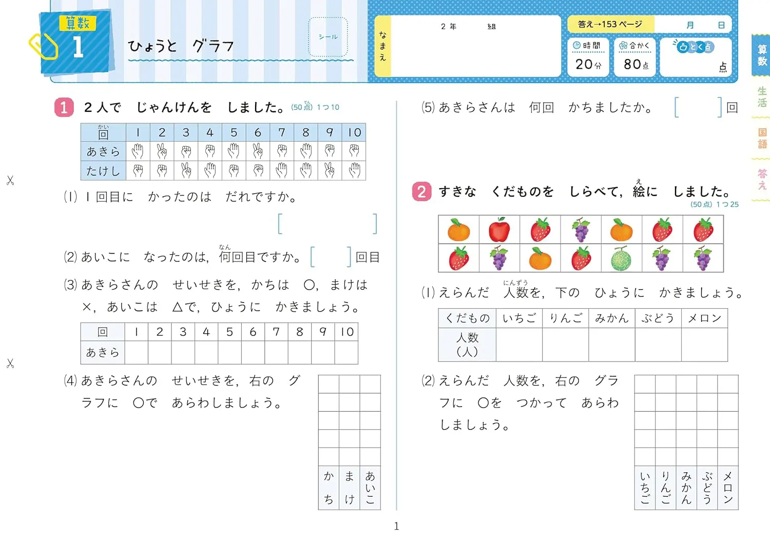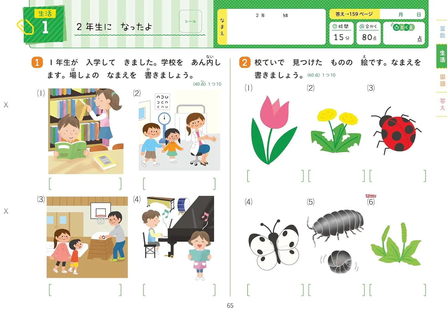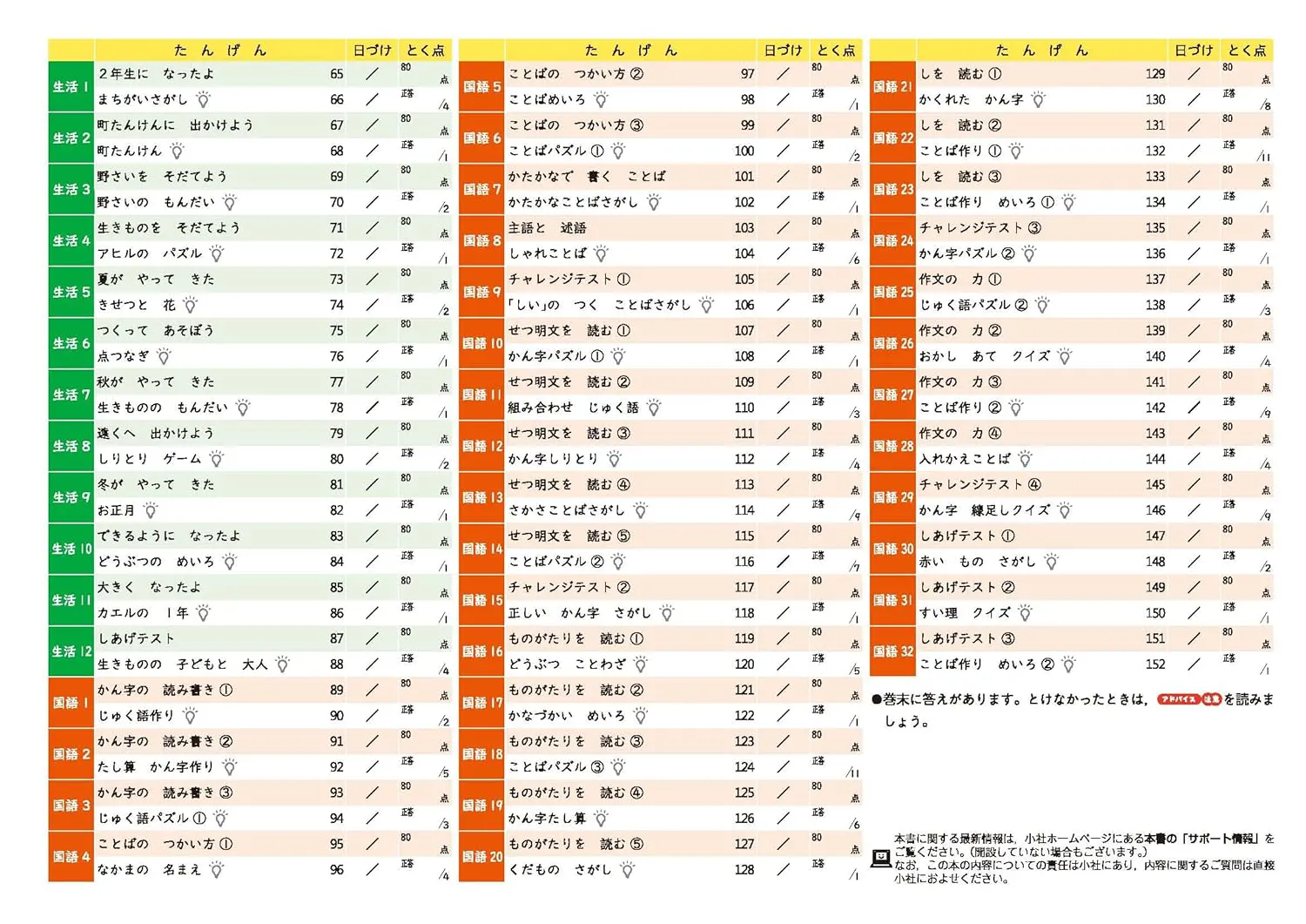 ・国語と算数では、少しレベルの高い「チャレンジ」問題も入っています。