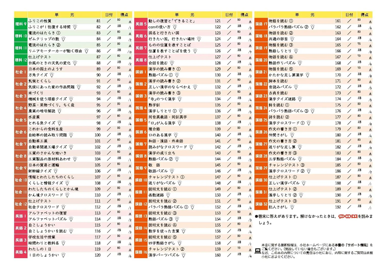 ・国語と算数では、少しレベルの高い「チャレンジ」問題も入っています。