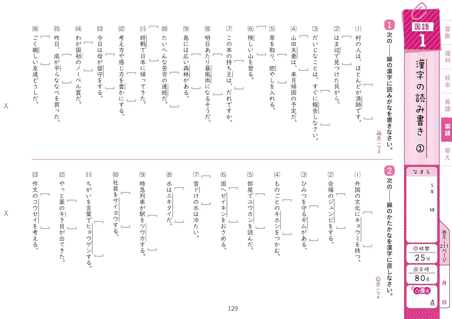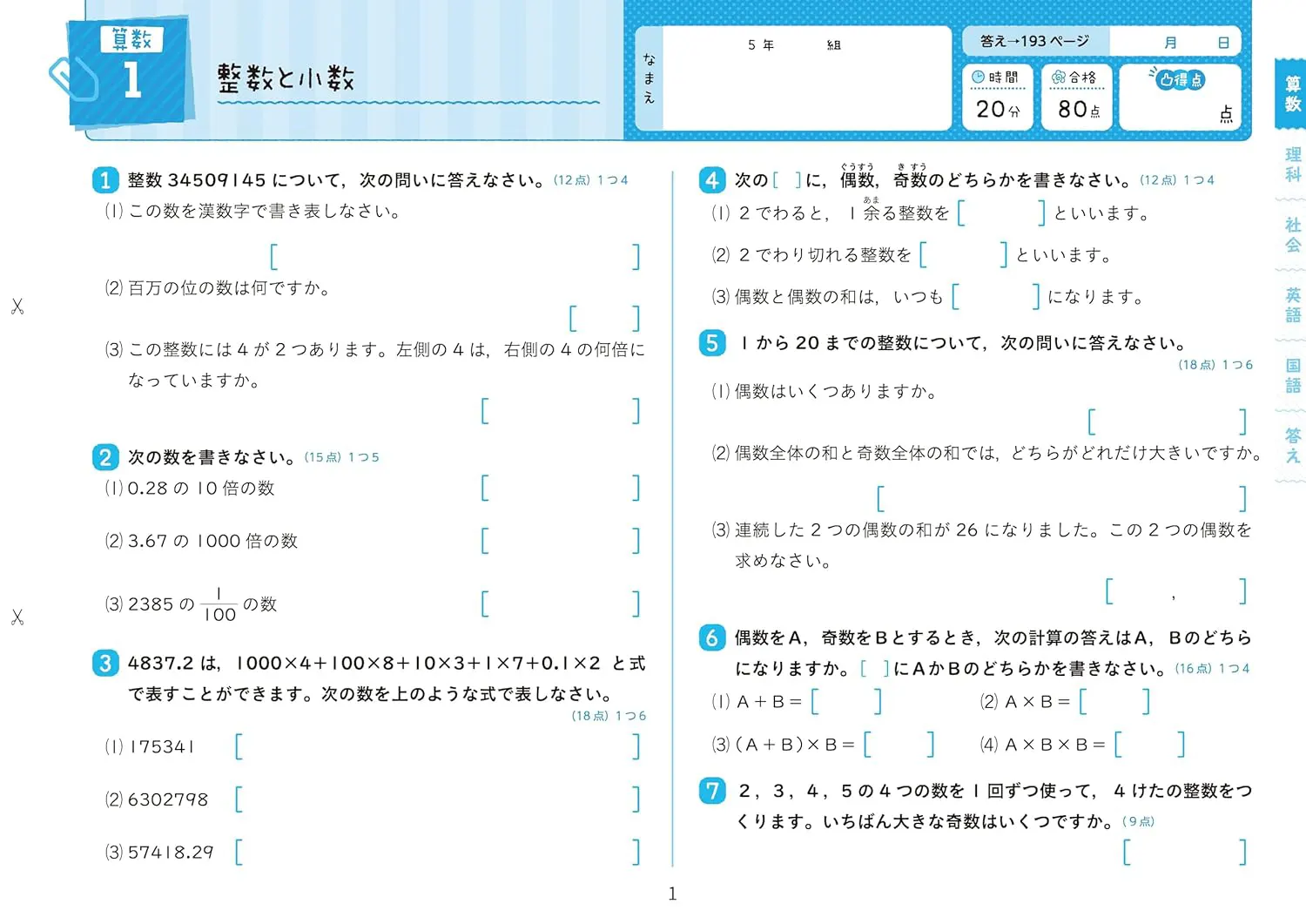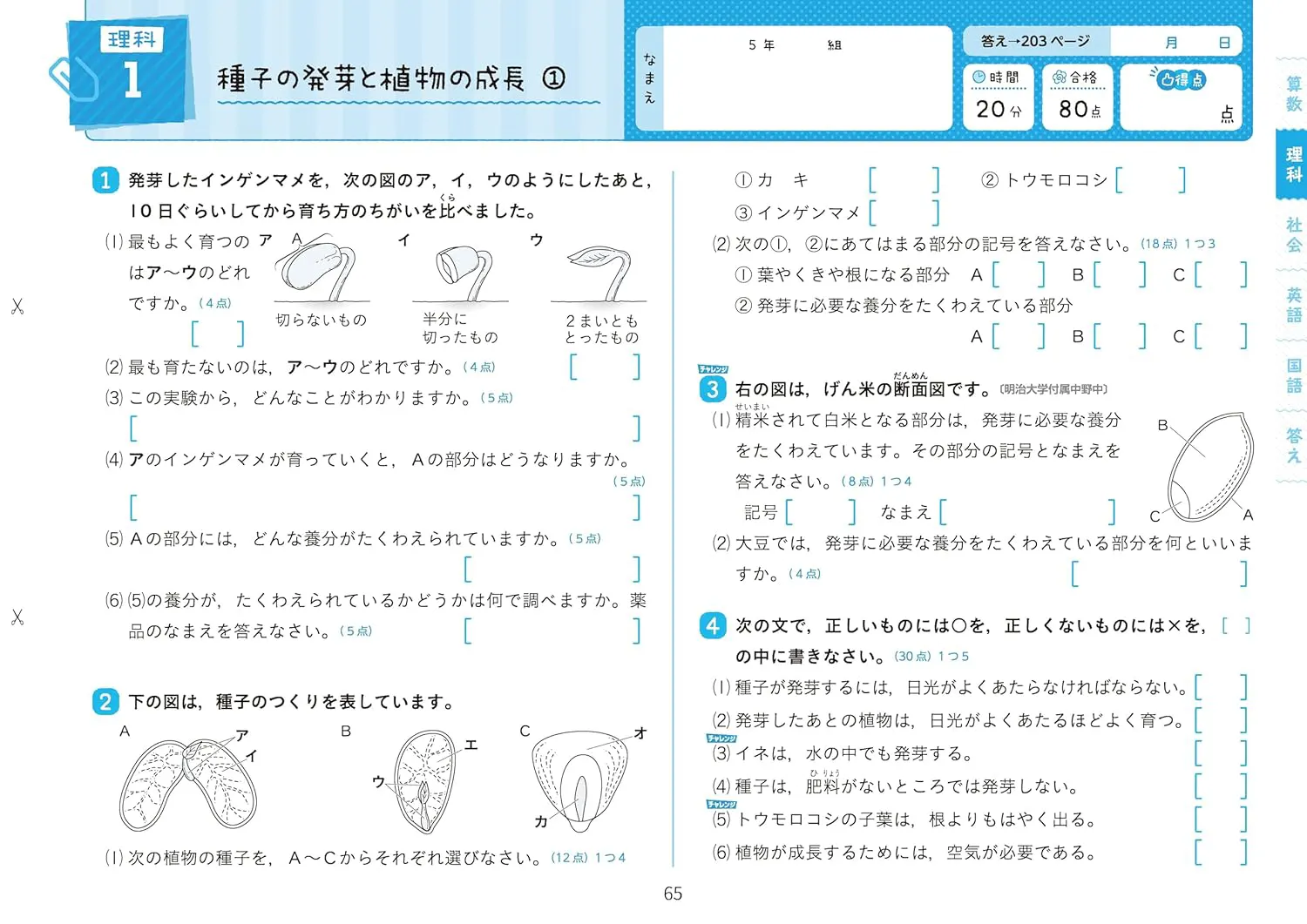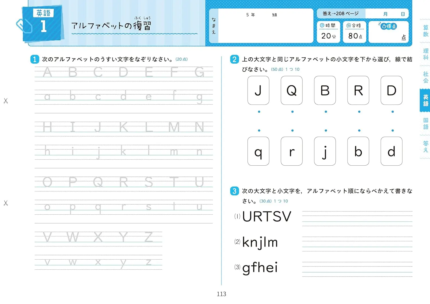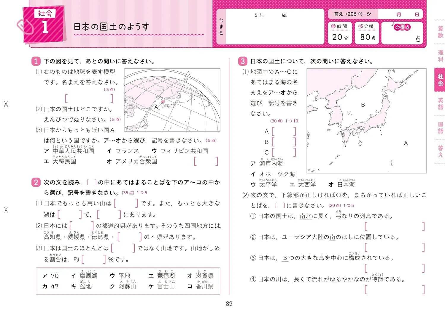全科(国語・算数・社会・理科・英語)の基礎をしっかり固められる標準レベルの問題です。