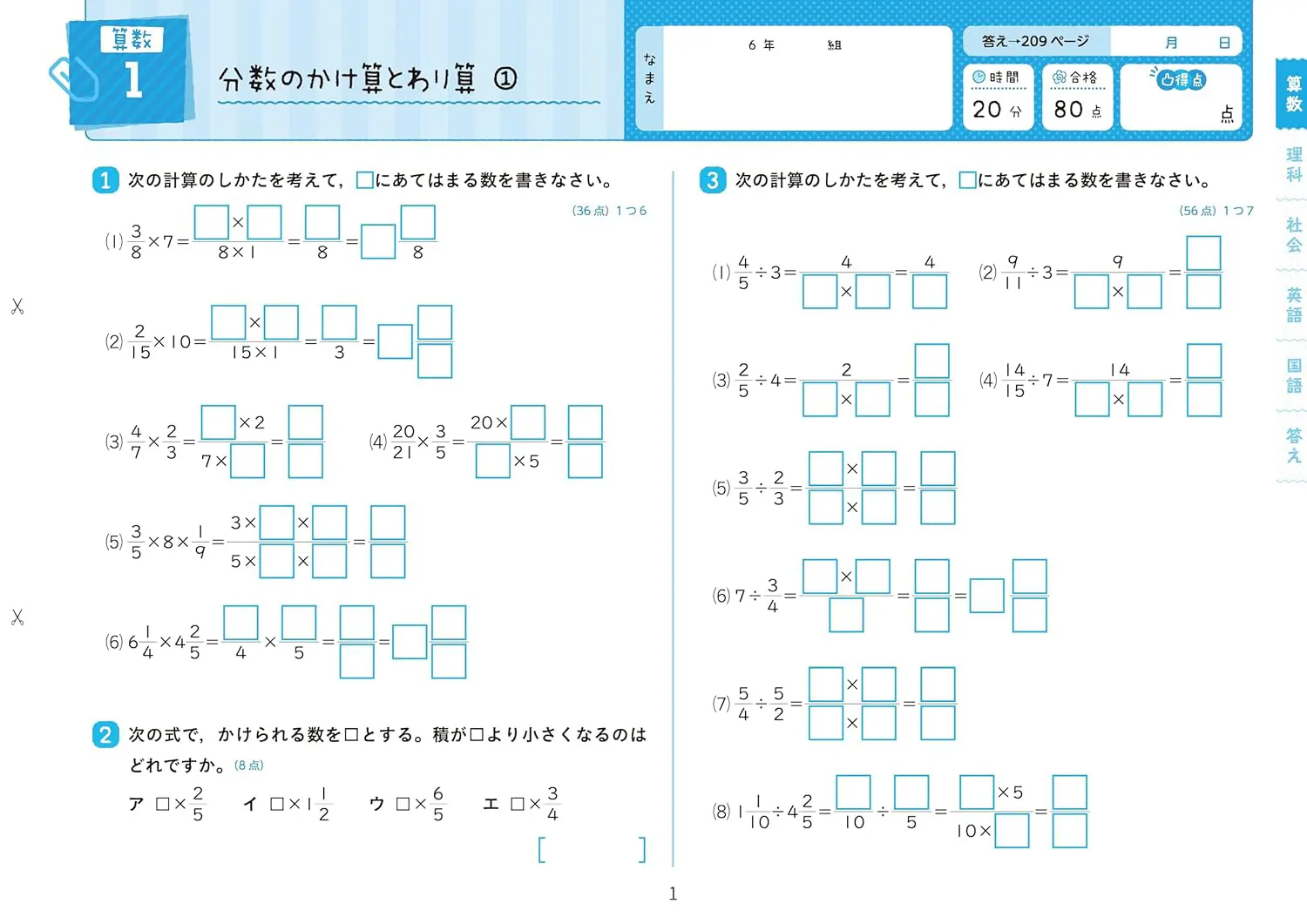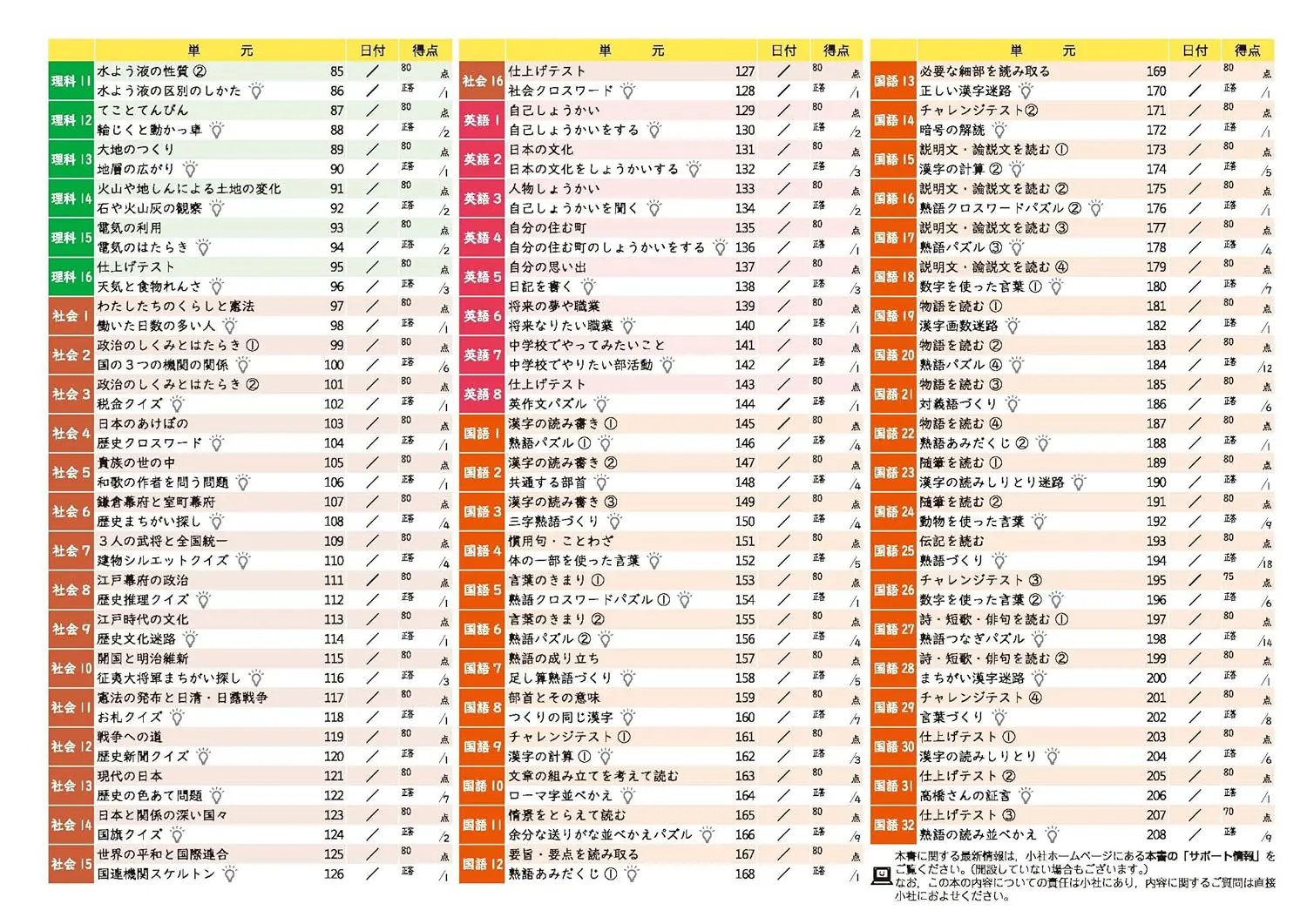 ・国語と算数では、少しレベルの高い「チャレンジ」問題も入っています。