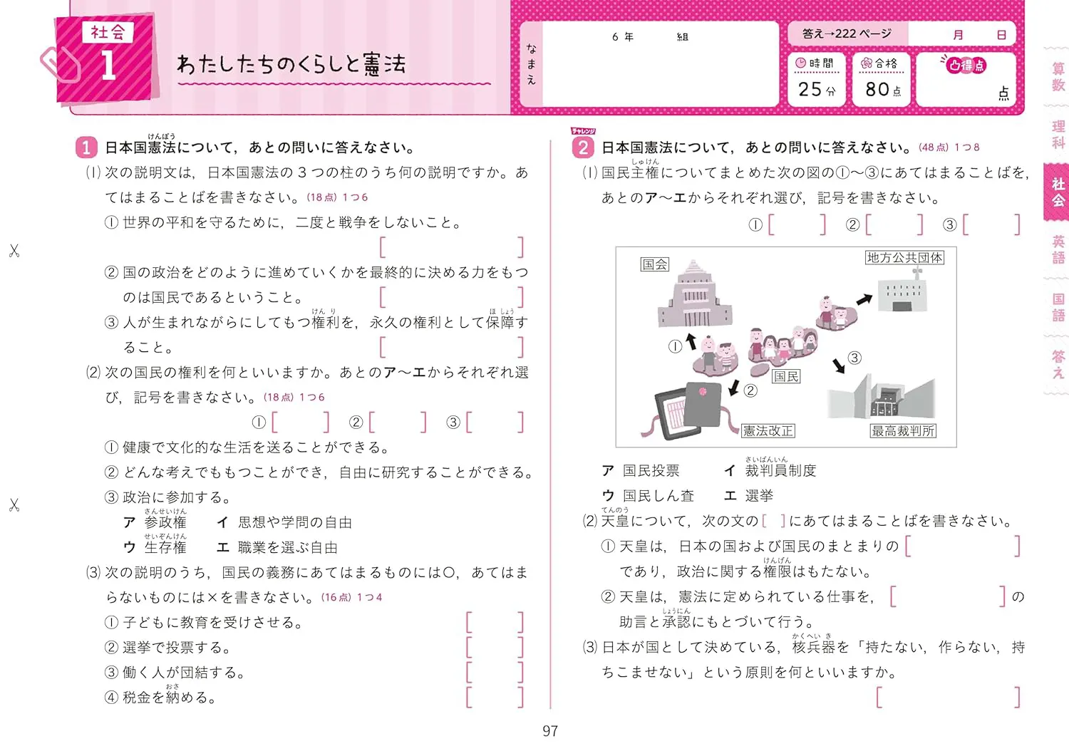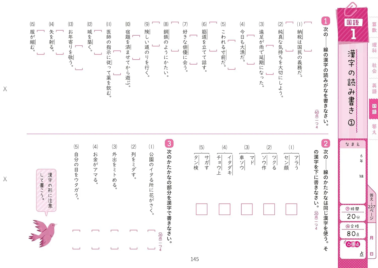 全科(国語・算数・社会・理科・英語)の基礎をしっかり固められる標準レベルの問題です。
