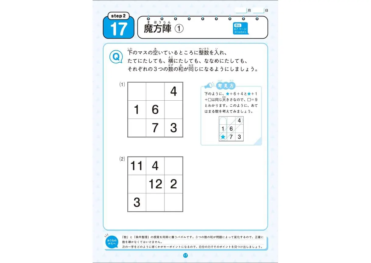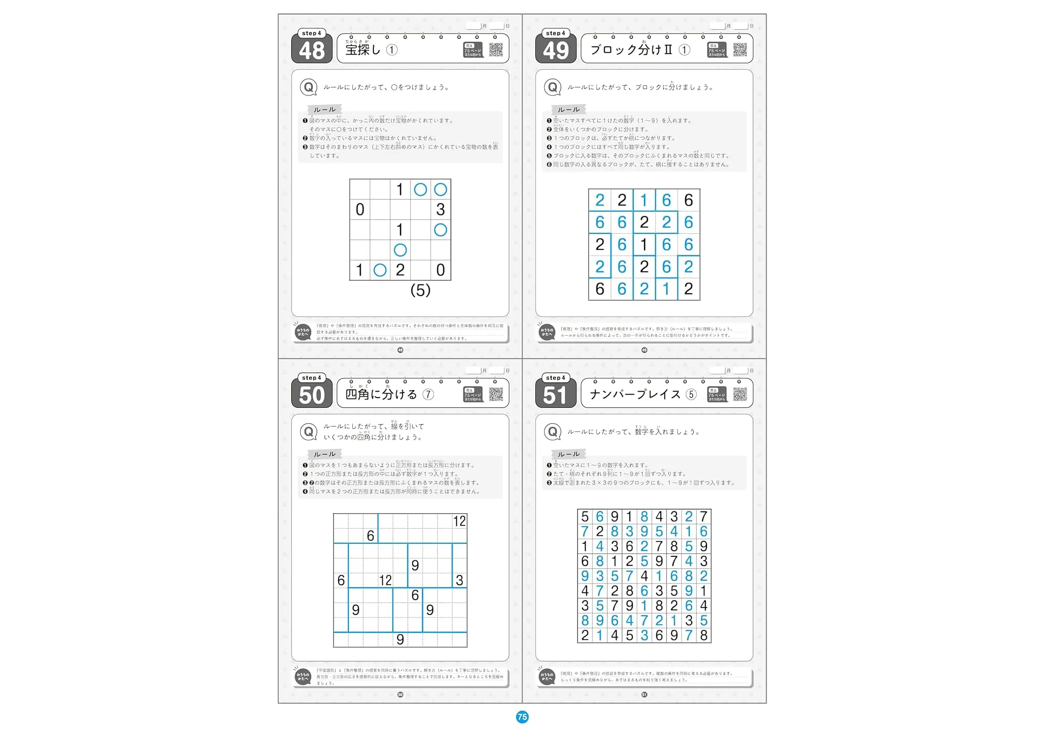 問題を教科書に沿って解いているだけでは身につきにくい「自分で答えを見つける力」を4つの分野(空間把握・仮説思考・数量感覚・語彙&表現)で育てるシリーズです。