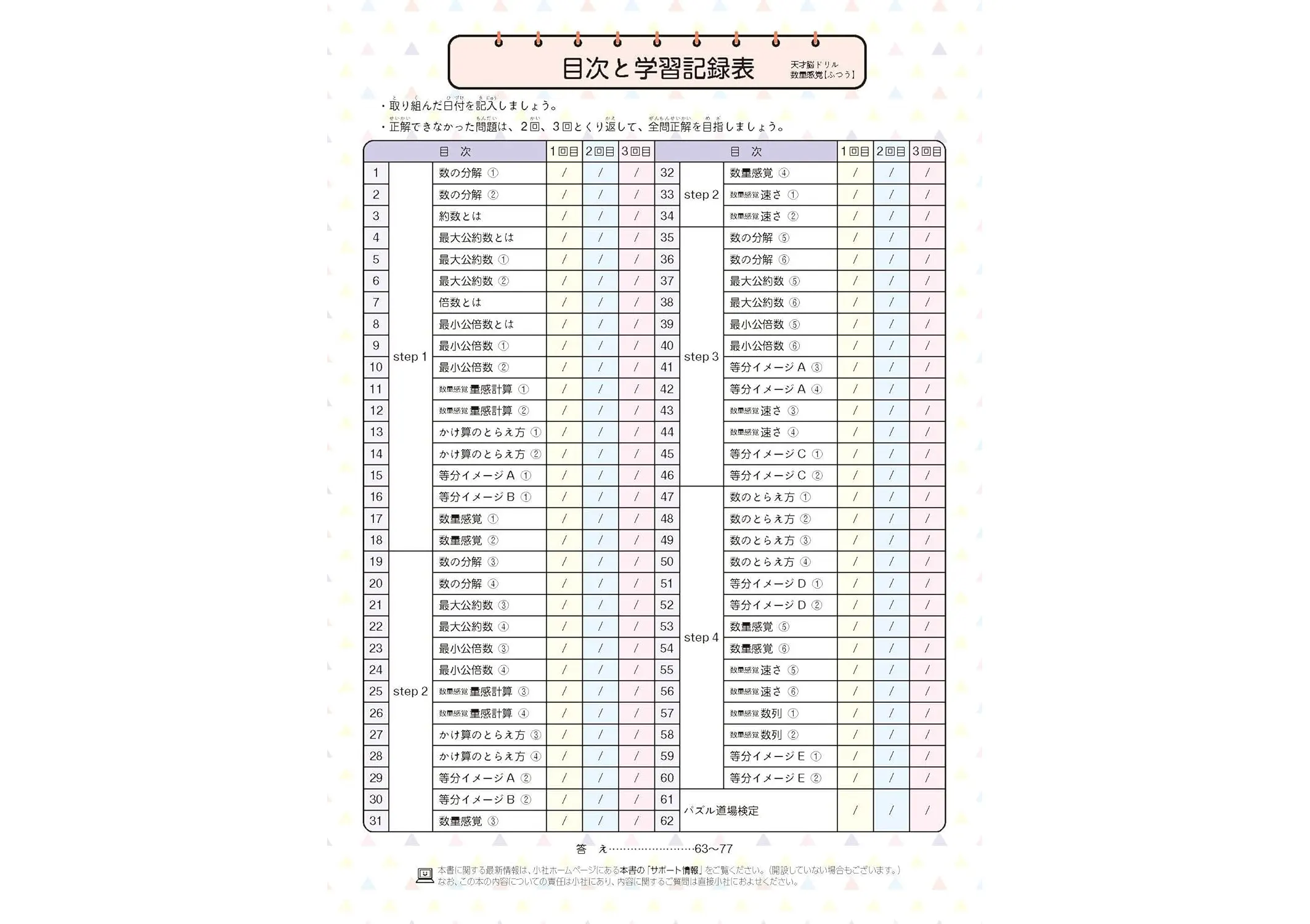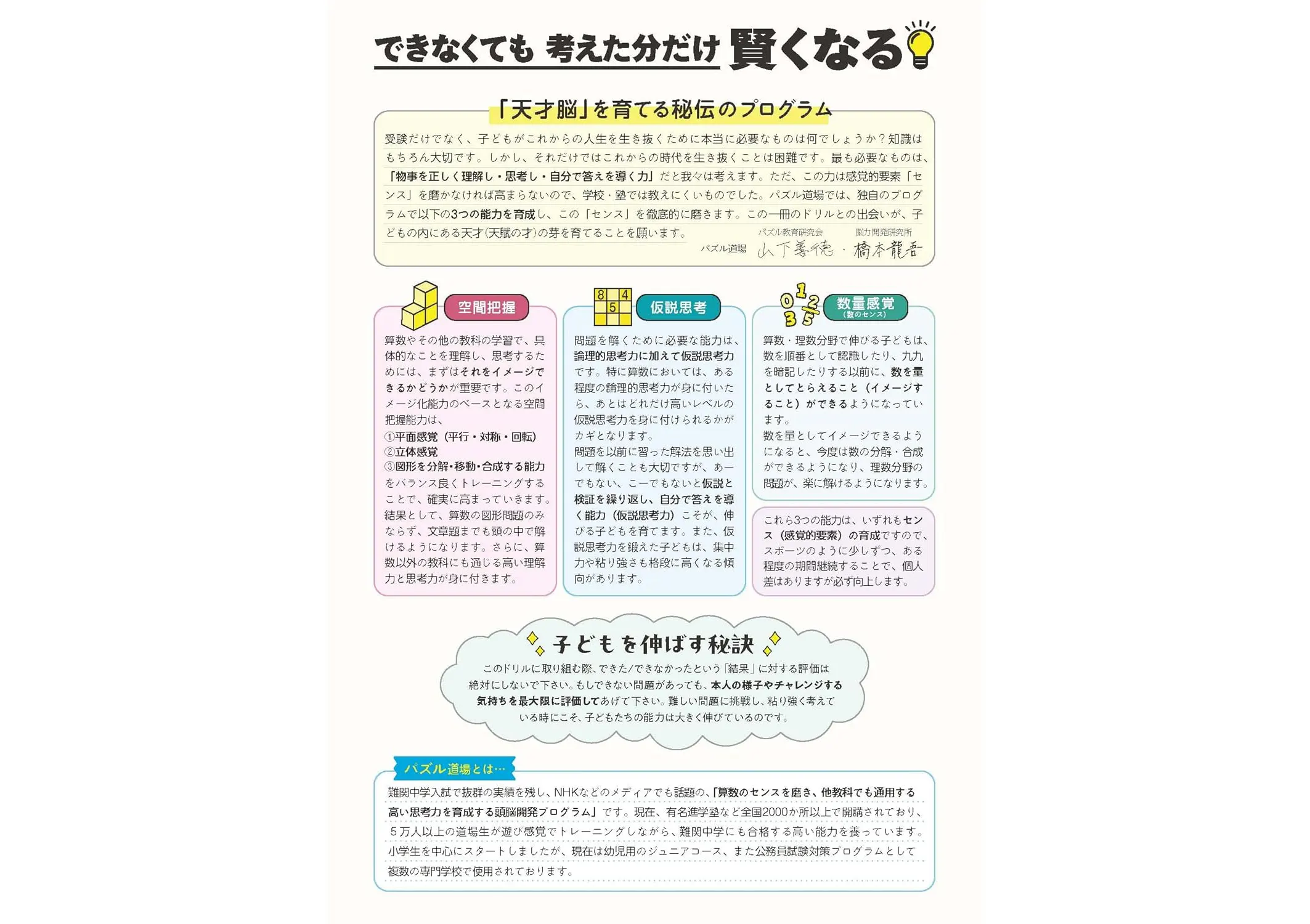 ・解き方がわからない問題でもあきらめずに取り組むことで思考力や集中力、忍耐力が身につきます。