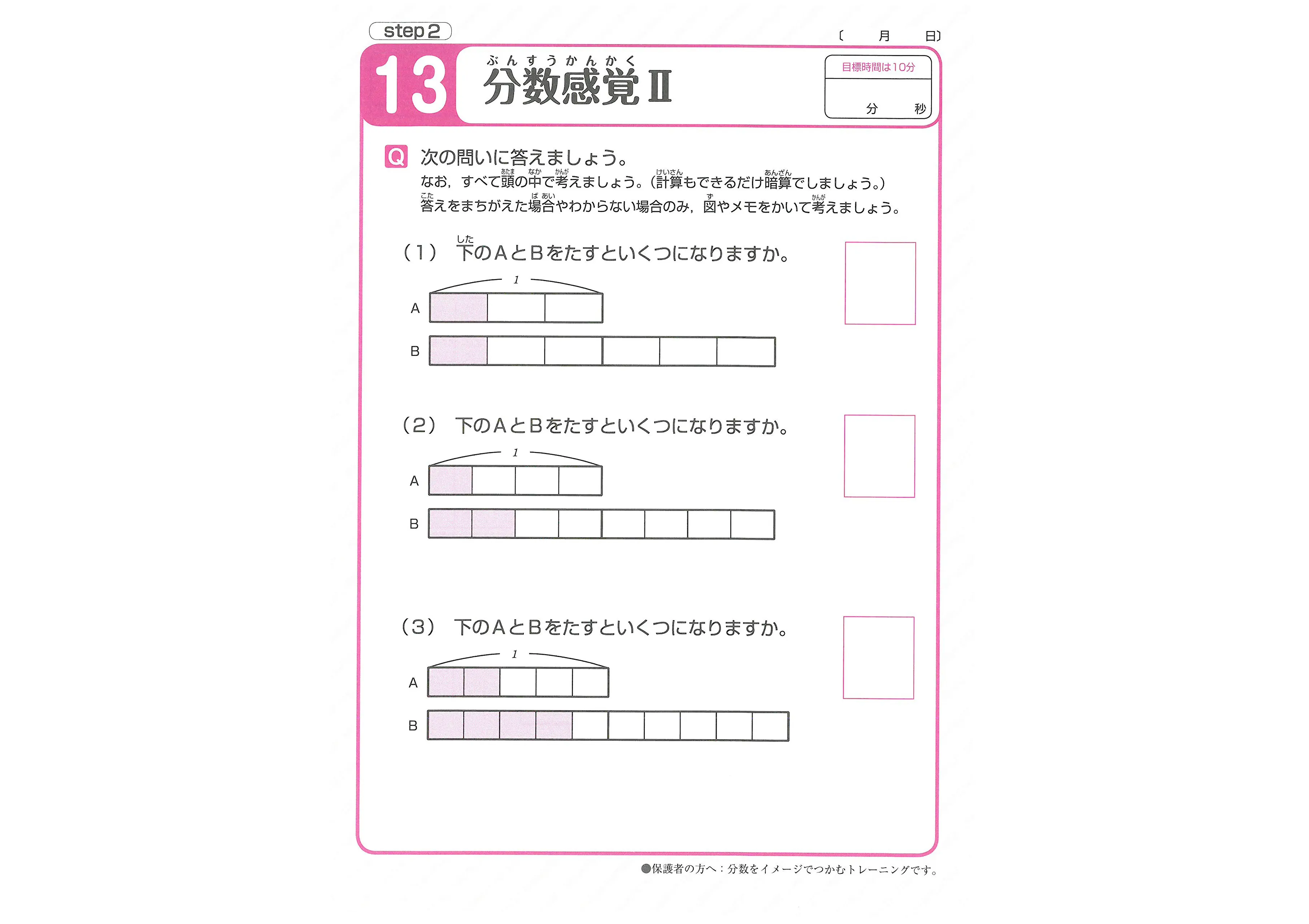 〇数量感覚には,①量感(数を量としてイメージする感覚),②分数感覚(分数を量としてイメージする感覚),③数列や規則をイメージする能力(順にならんだ数の規則性を見つける),④数のセンス(数の分解・合成能力) があり,バランス良くトレーニングすることで,確実に高めていくことができます。