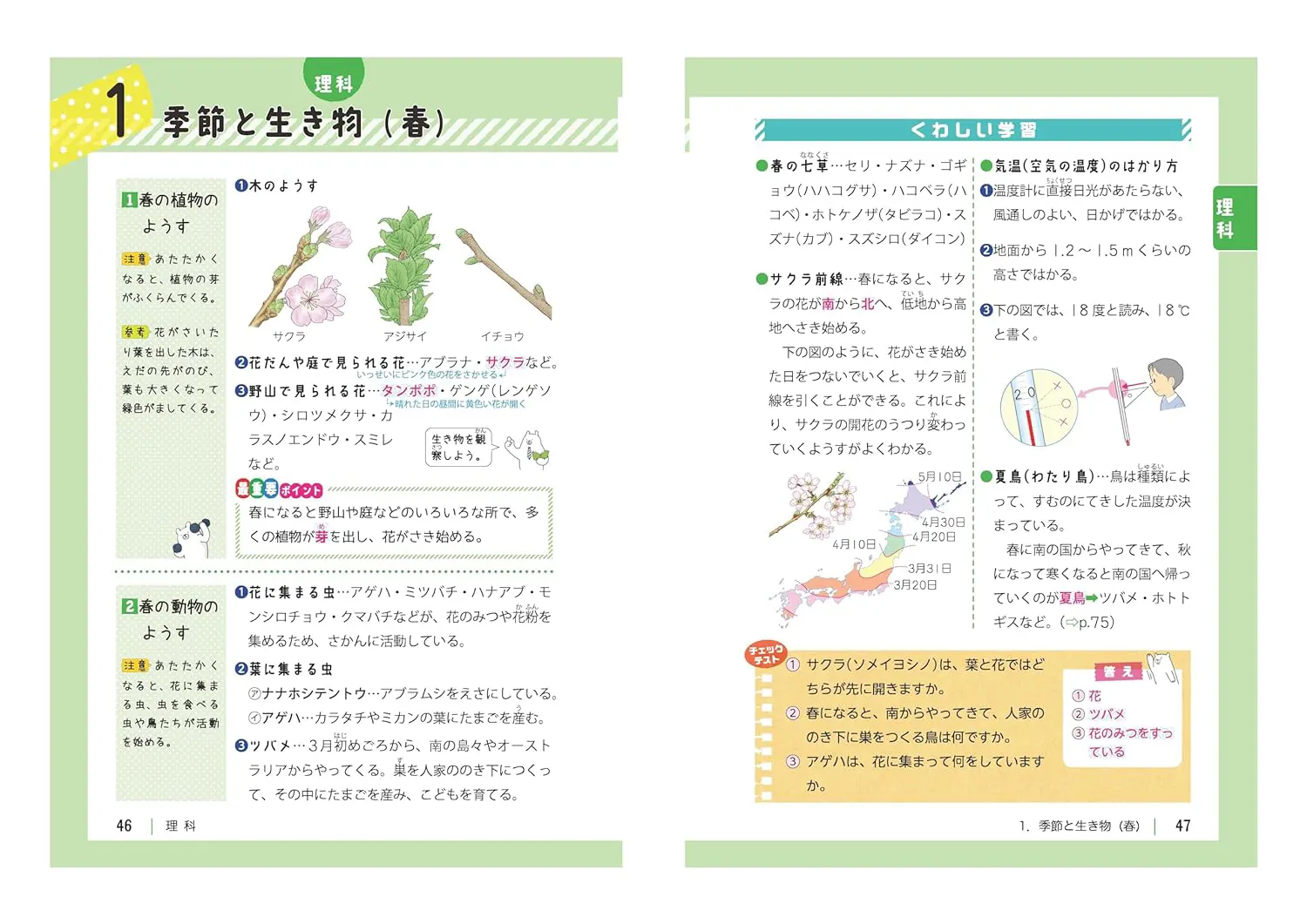 ・国語・社会・算数・理科の学習の要点をビジュアルな図解・写真、表・グラフなどを取り入れてカラーでわかりやすく、簡潔にまとめています。