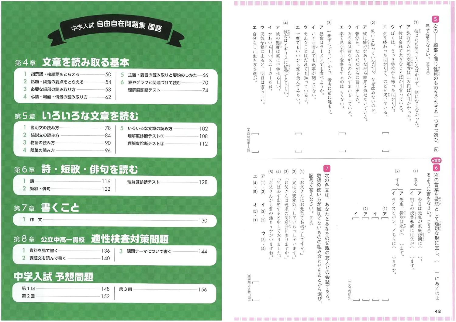 ・さらに「公立中高一貫校の適性検査」に対応したページもあり、さまざまな出題形式にふれることができます。