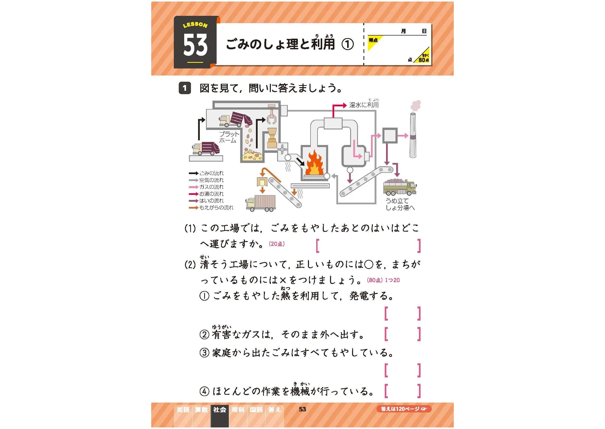 ・小学4年の国語・社会・算数・理科・英語の問題を,1単元1ページあたり5分間で取り組むことができます。