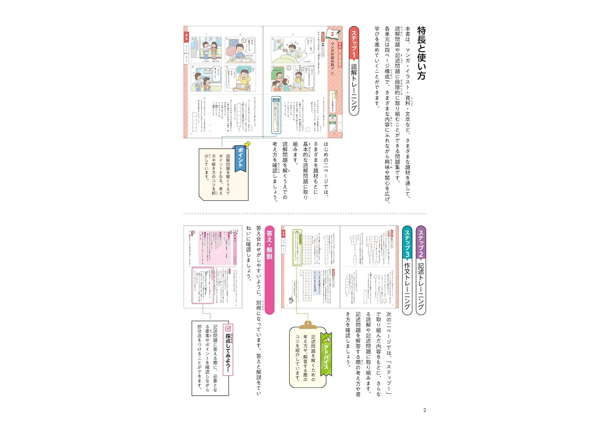 「読解」や「記述」の問題が苦手な小学生にこそ試してほしい。マンガやイラストなど、思わず読みたくなる題材で読解・記述・作文の力をつける!もちろん中学入試対策にも。