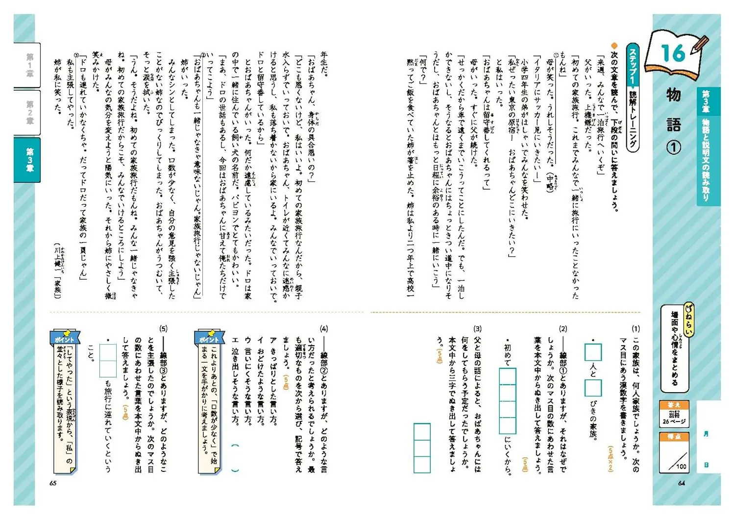 第2・3章では、物語から社会や理科のおもしろい知識まで、幅広い素材からやさしめの問題文を選んでいます。