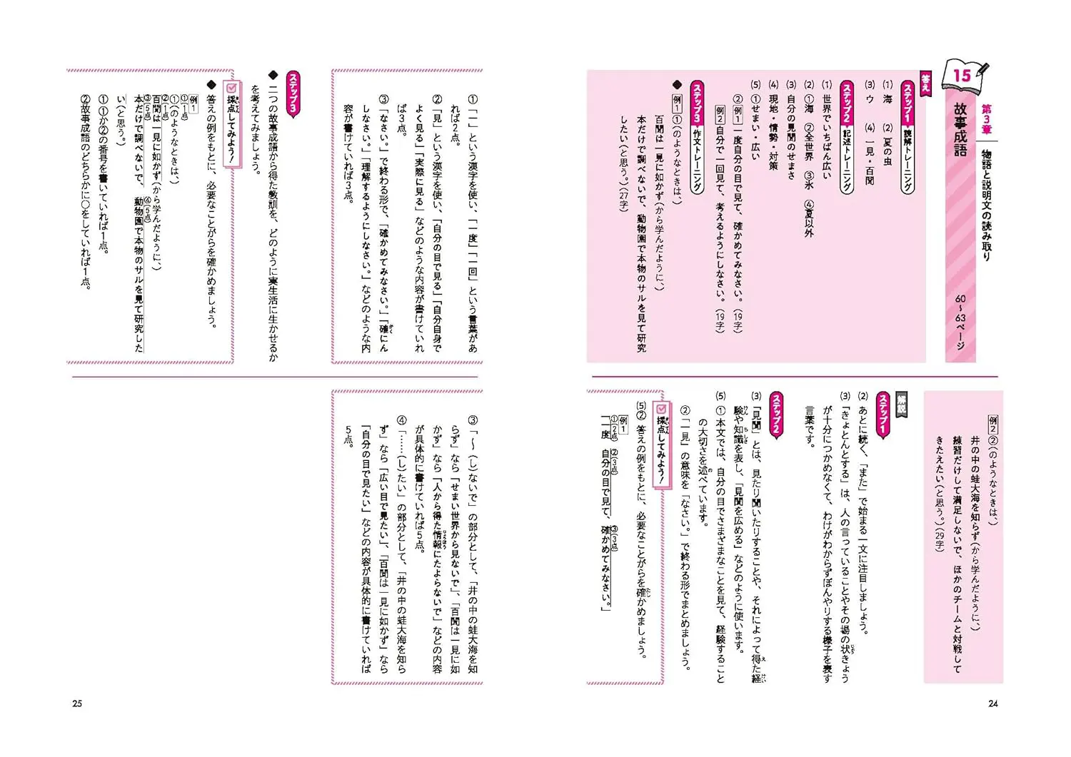 この問題集は、全国の小学生が抱える「書けない理由」とじっくり向き合いました。「書けない」を「書ける!」という自信へと変えていくための一冊です。こだわったのは、「読む力」と「書く力」を一緒に育てる3つのステップ。題材も、昔話やサイエンス、マンガなど、思わず読みたくなる内容をそろえました。この一冊をやりきれば、学校のテストはもちろん、入試の記述問題に対応できる力も身につきます。さあ、最初のページを開いて、「書ける!」への一歩を踏み出そう!
