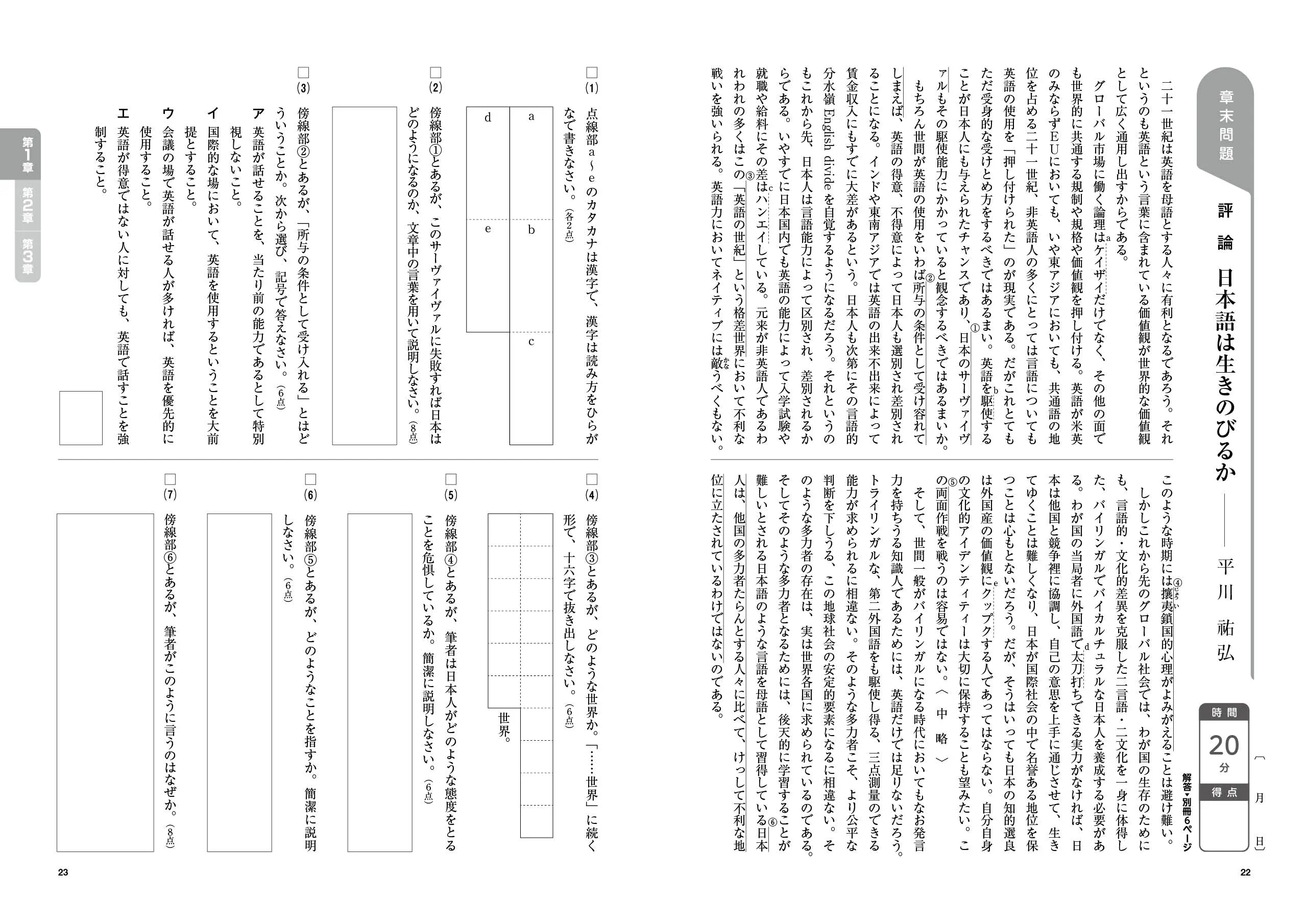 ・各問題は見開き2ページ構成で,文書を読んで後の小問に答える形式としています。