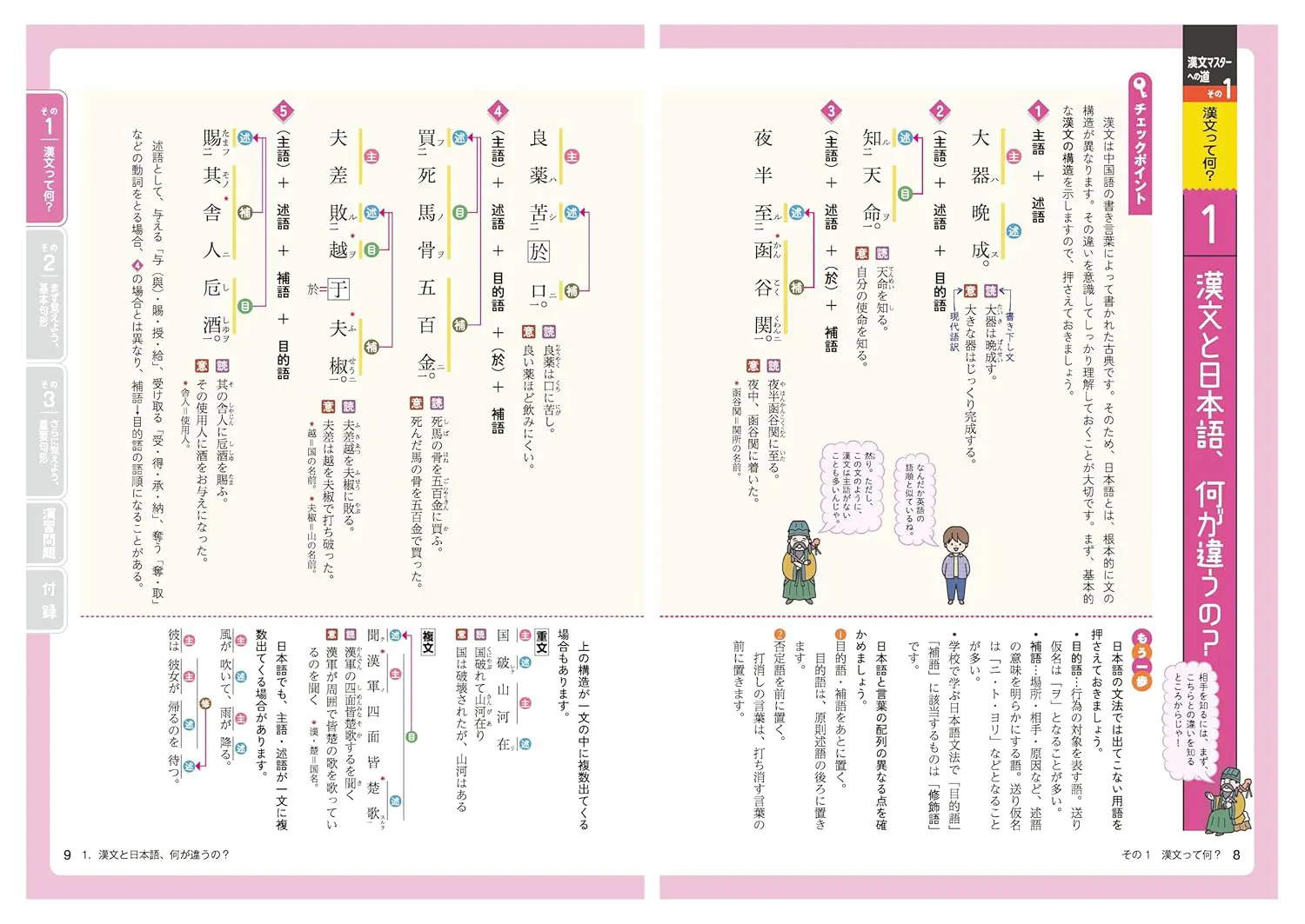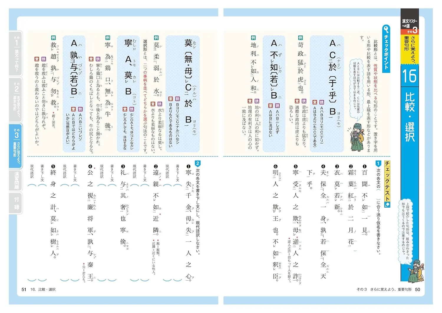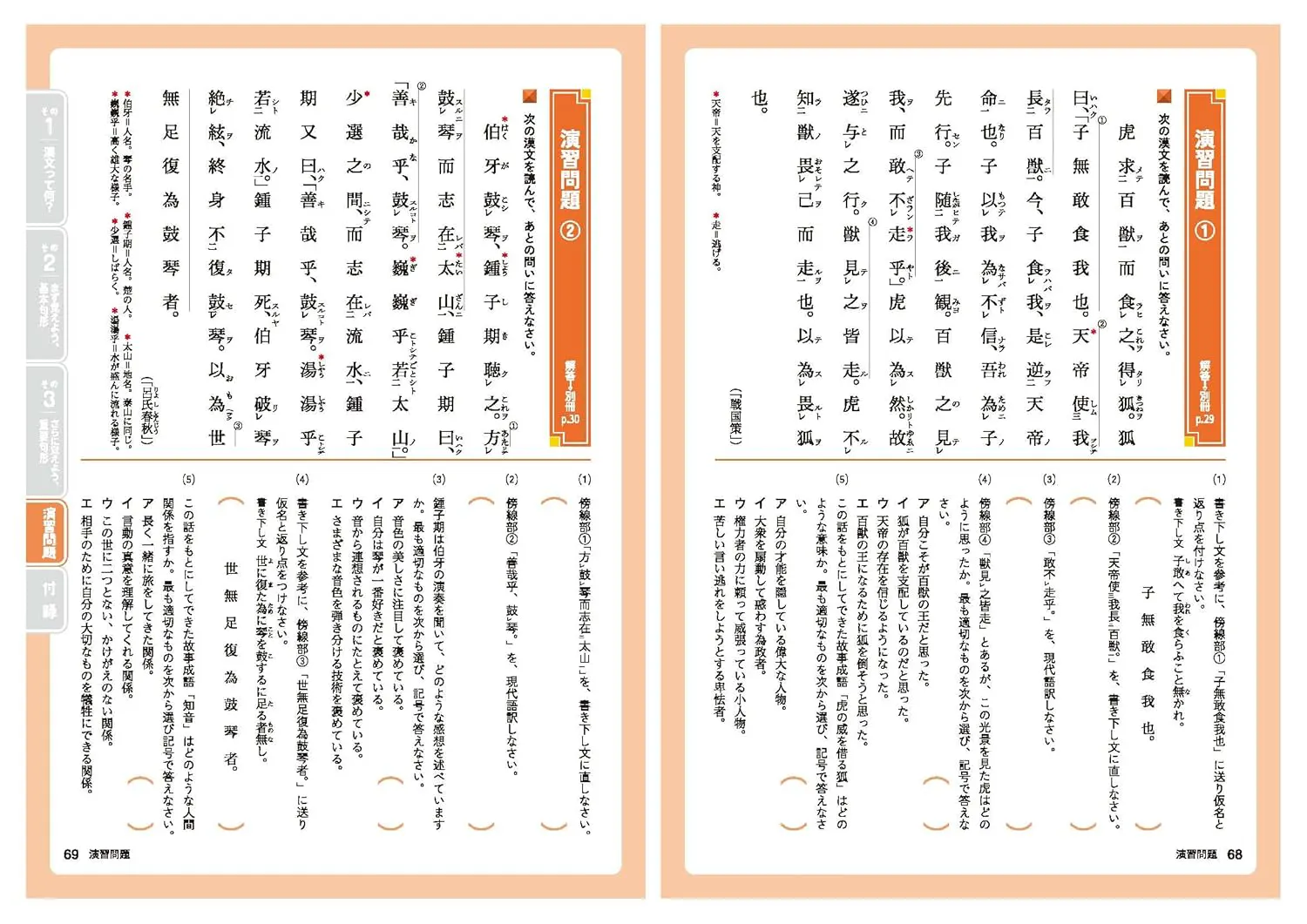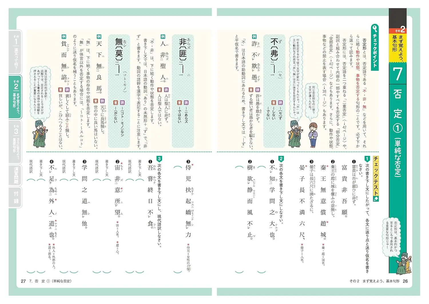「漢文にはどうして返り点や仮名がついているの?」――そんな漢文の基本から始めて、重要な句形を1単元1見開きでステップ式に学習していきます。