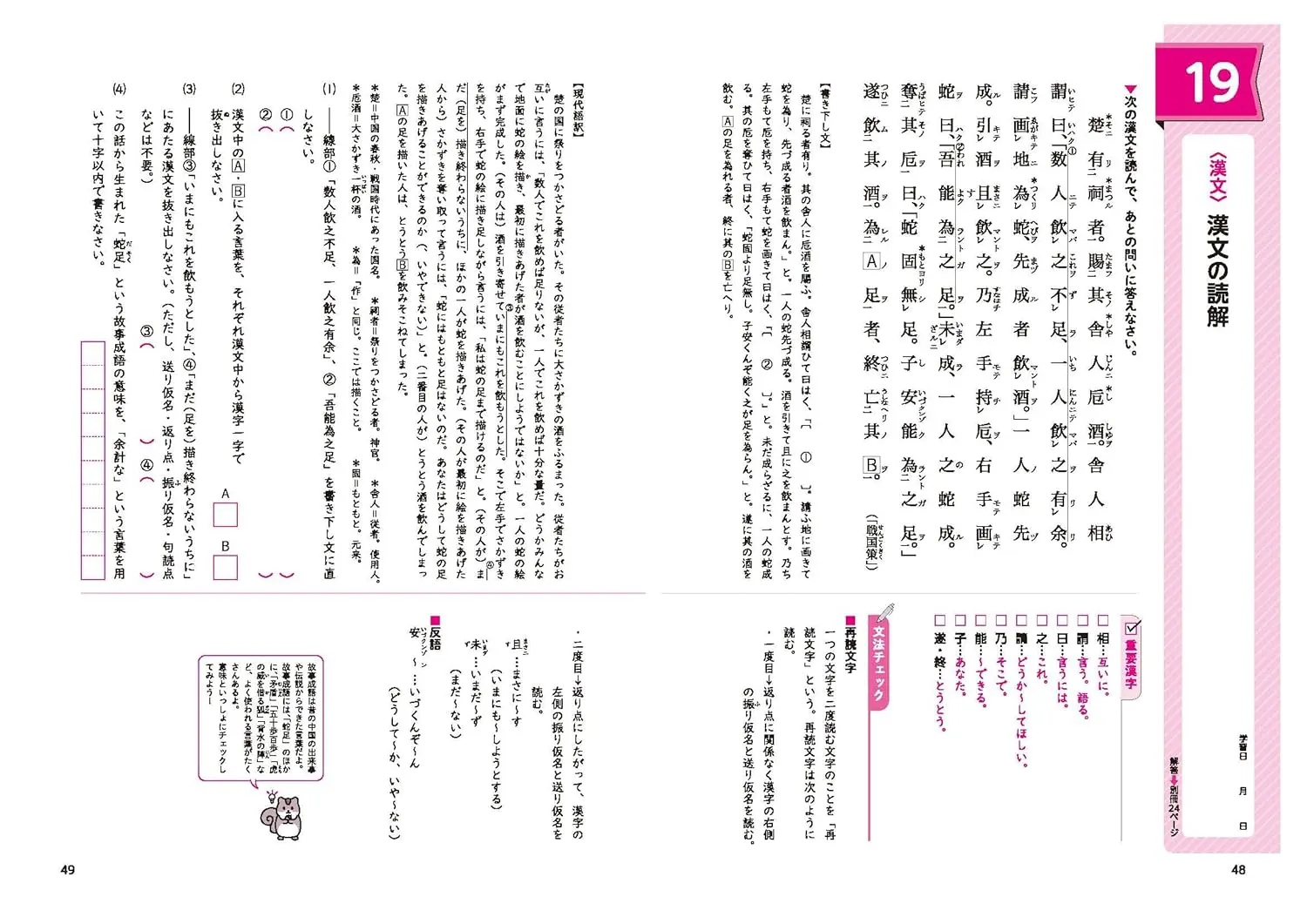 受験研究社「中学 標準問題集 古文・漢文」に
