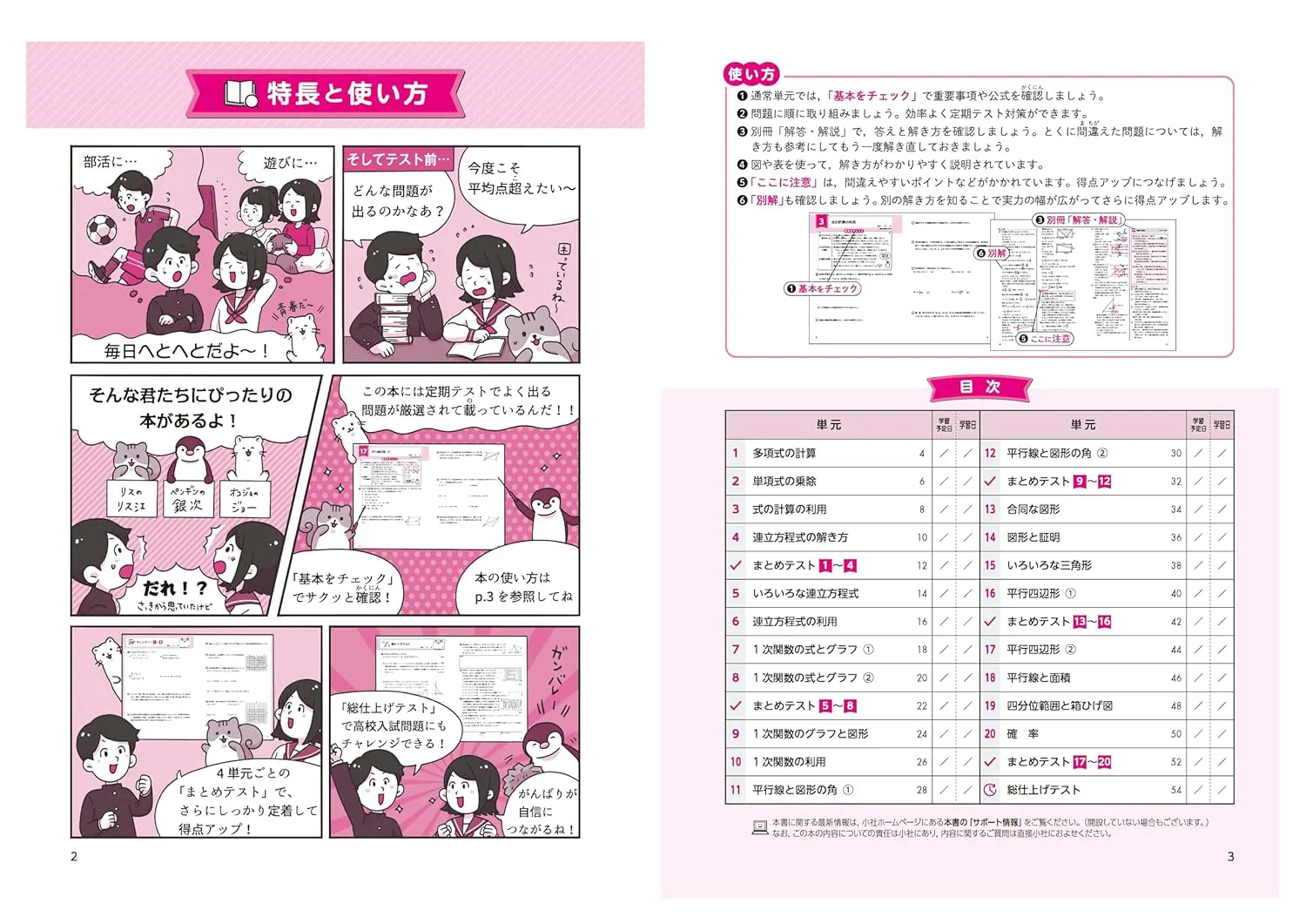 2)いろいろなパターンの問題を掲載しているので、定期テスト対策にぴったり。
