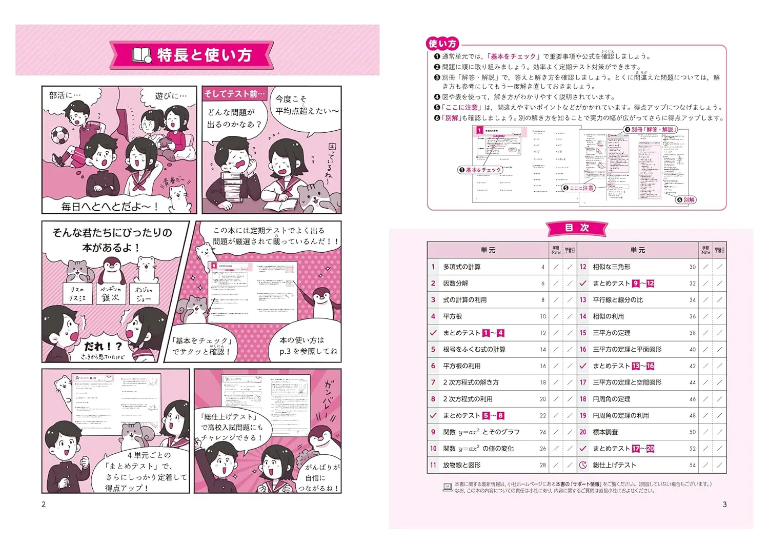 2)いろいろなパターンの問題を掲載しているので、定期テスト対策にぴったり。
