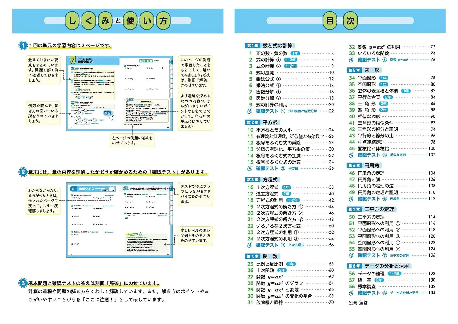 ・計算の過程や答えの導き方をくわしく解説しているので、1人で学習する人も安心です。