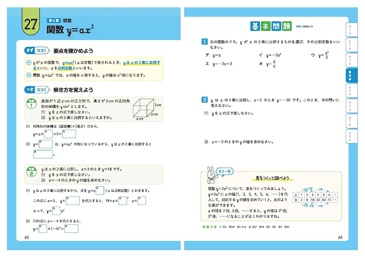 ・右ページでは、左ページの内容に対応した「基本問題」にチャレンジ!