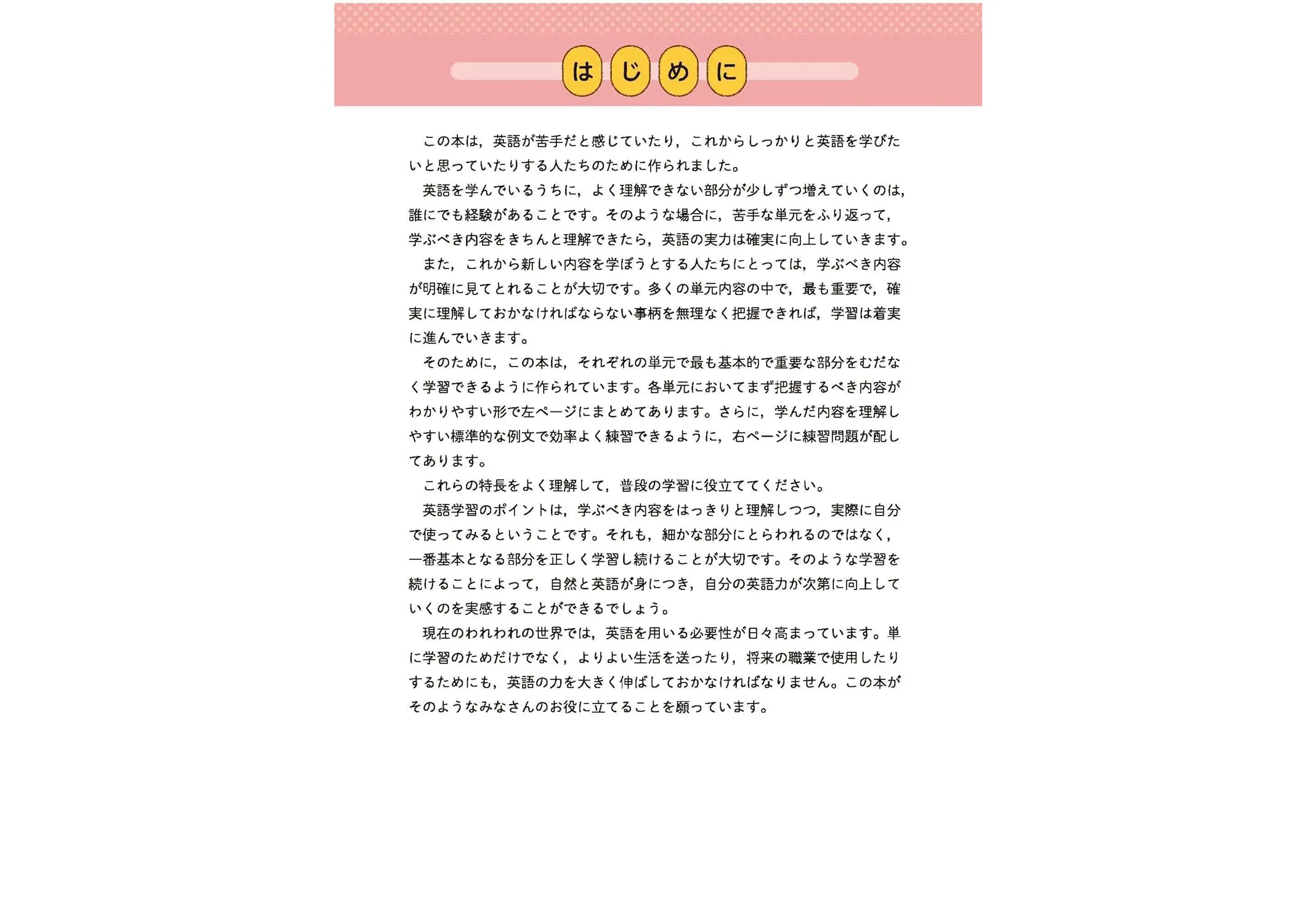 この本は、数学/英語が苦手と感じていたり、しっかり基礎から学びたいと考えている中学生のためにつくりました。それぞれの単元で最も基本的で重要な部分をむだなく学習できるように工夫しています。ノート式まとめ+やさしい問題で、「わかった!」がふえていく基礎問題集です。