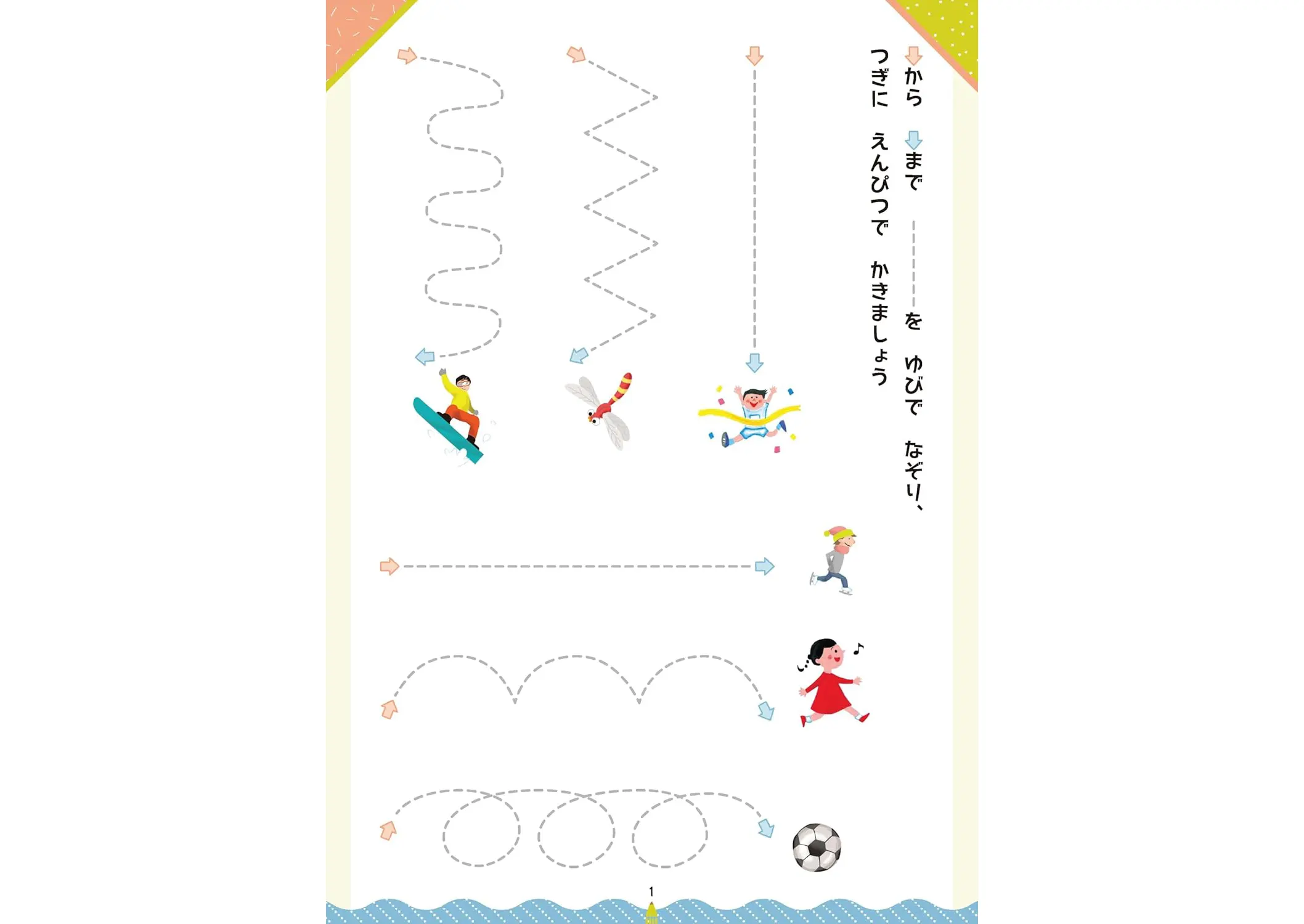 ・線を書く練習や、お手本を指でなぞるところから始められます。