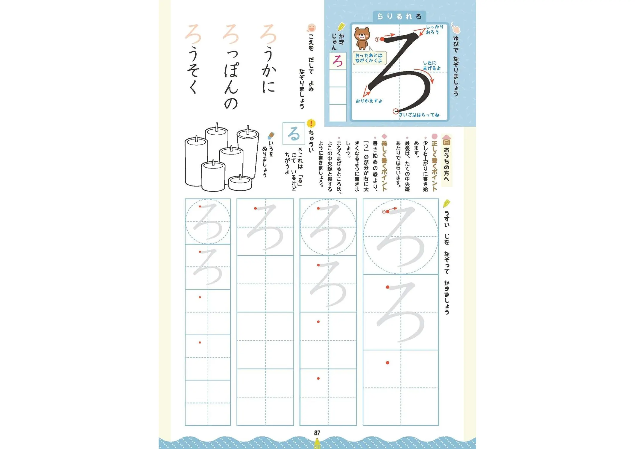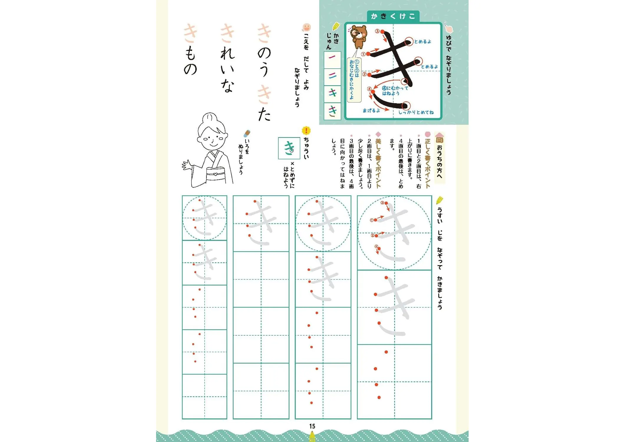 ・それぞれの文字には「正しく書くポイント」「美しく書くポイント」を掲載。親子でいっしょに確認しながら取り組めます。