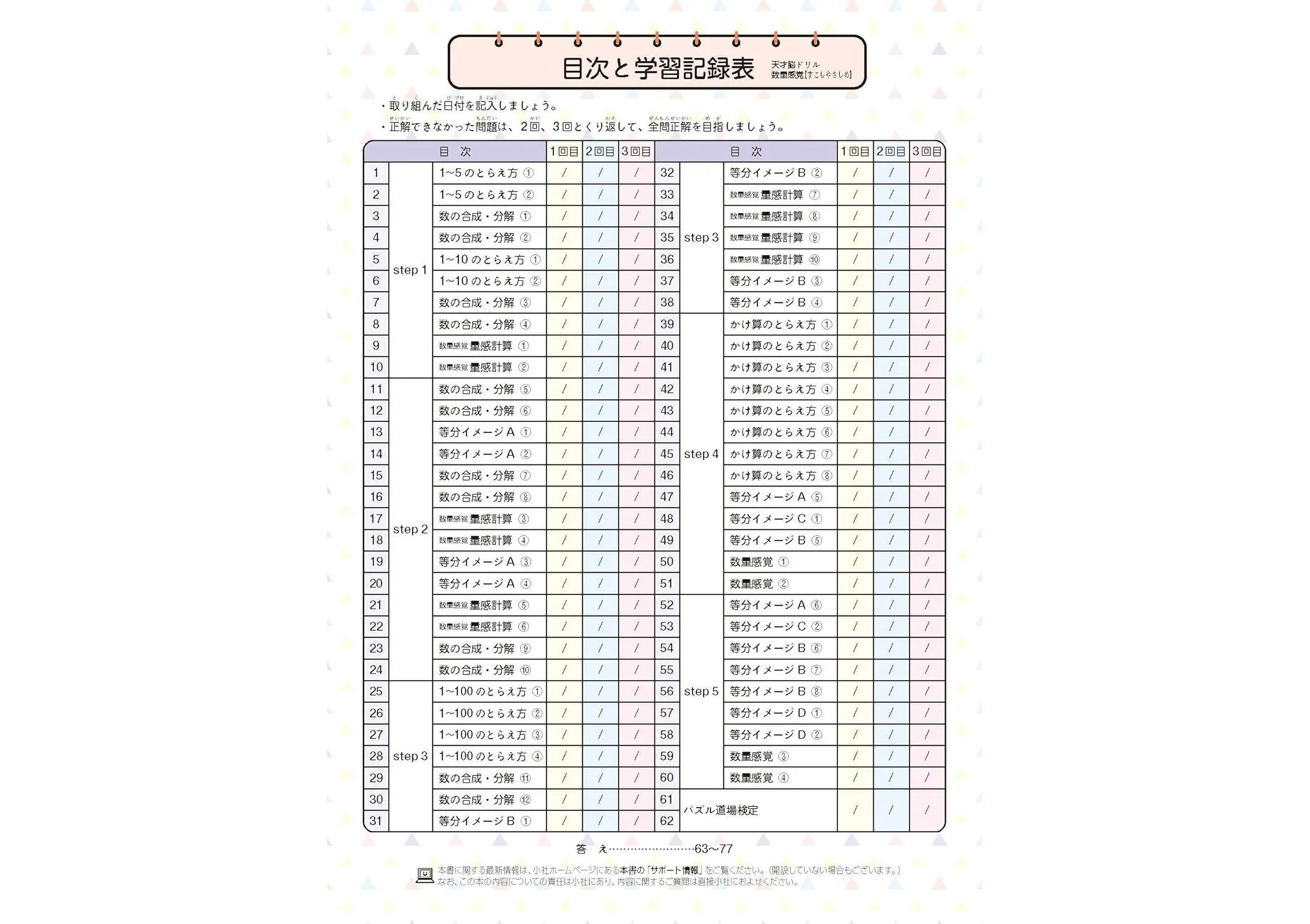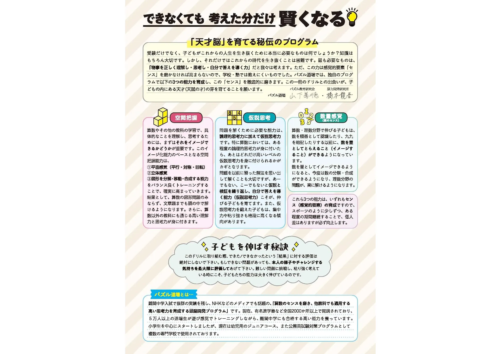 ・解き方がわからない問題でもあきらめずに取り組むことで思考力や集中力、忍耐力が身につきます。