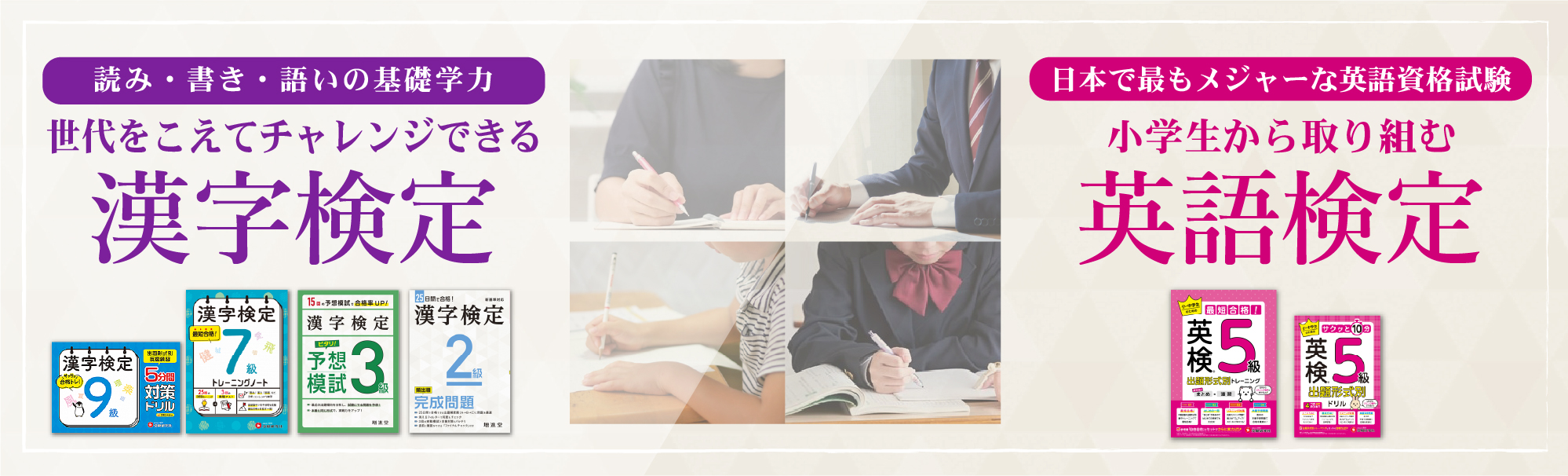 過去問を徹底して分析し出題頻度の高い問題を精選。増進堂がお届けする4つの漢検教材(ドリル・問題集)から、ご自身にピッタリの1冊を探してみてください。