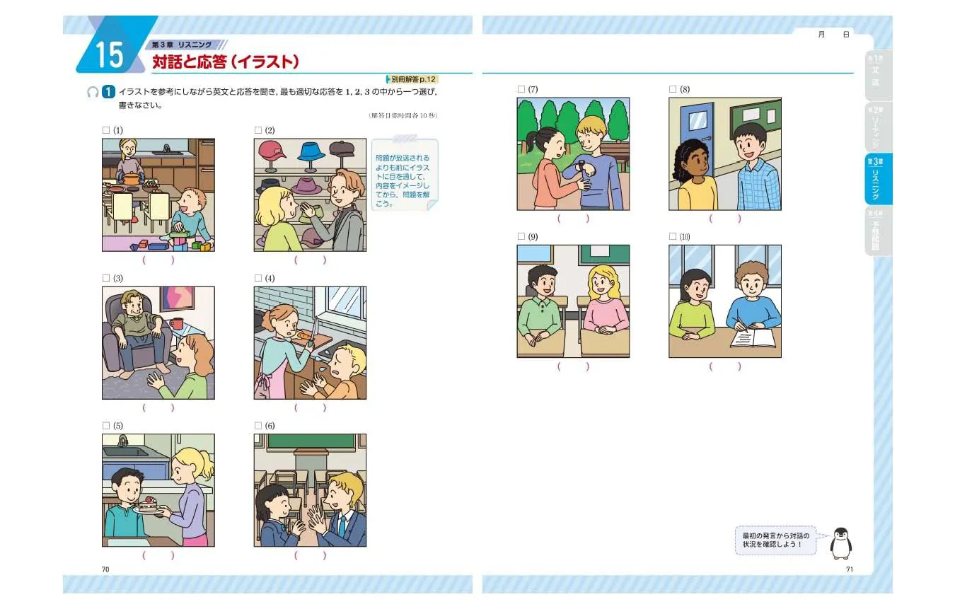 ・別冊解答には、スクリプトと全訳を載せています。