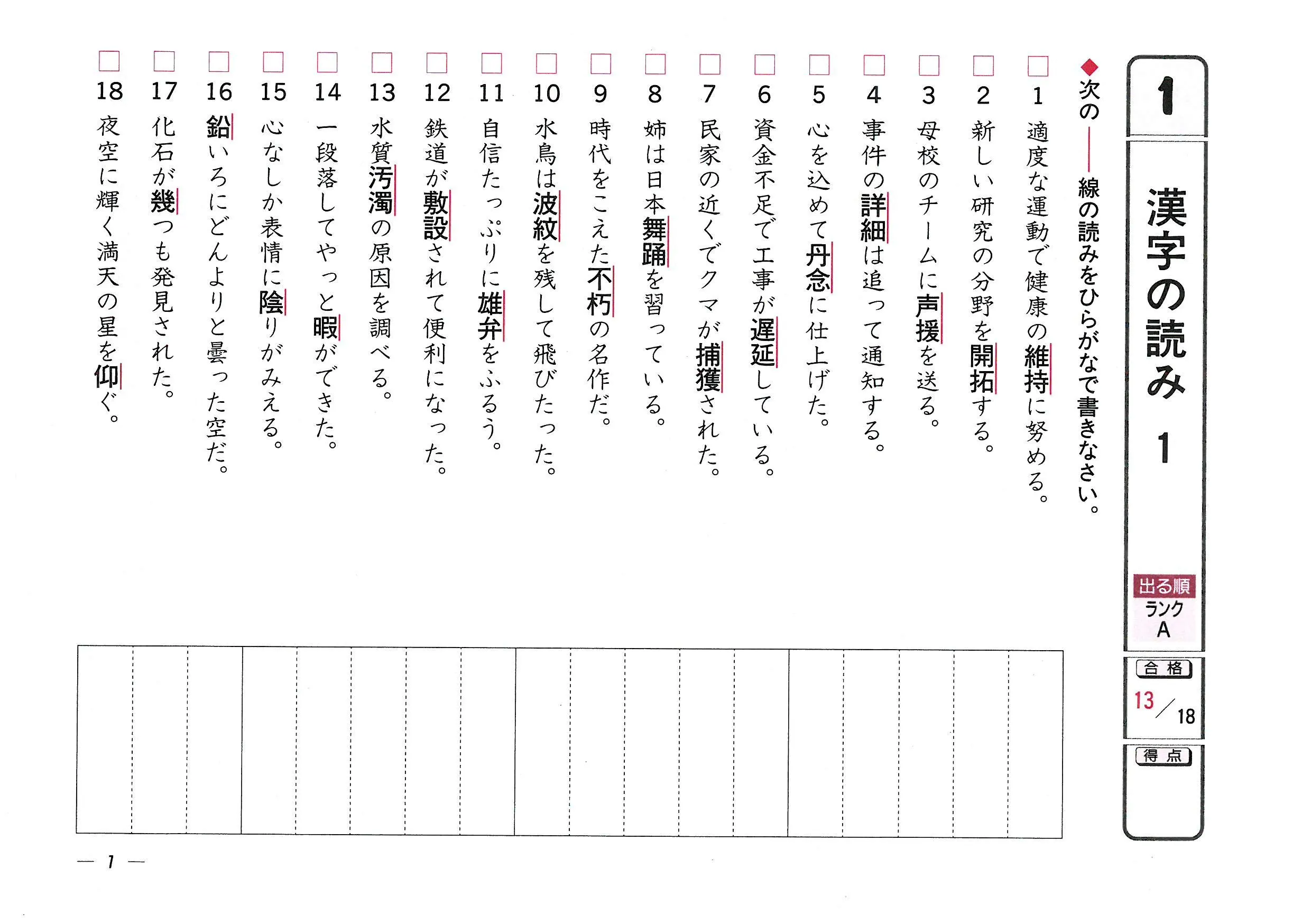 ・受検の目安:中学校在学程度(日本漢字能力検定協会HPより)