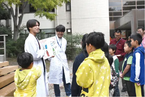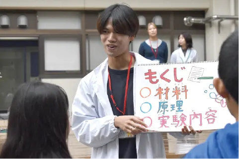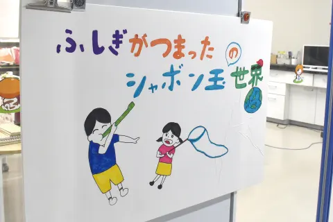 今年は、「ふしぎがつまったシャボン玉のせかい」「まほうの粉で、液体をわけてみよう!「磁石と電池で動く!ミニモーターのひみつ」の3つのブースを出展されていました。