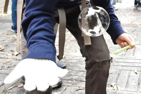 ▲シャボン玉について学んだあと、実際に作ってみます。「ふしぎ」と思うことが大切なんですね!