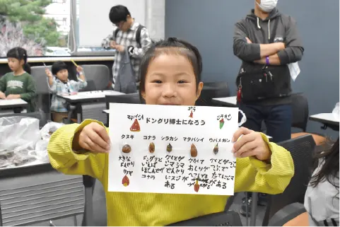 今年のテーマは「ドングリ」。ドングリはブナ科の植物が実らせる果実で、当日は5つの属のドングリが用意されていました。