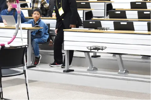 身近なドローンといえば、ラジコンのように操作して飛ばすイメージですが、今回は、ドローンをプログラミングで制御する、大型イベントのショーなどで見ることができるあのシステムが体験できます。