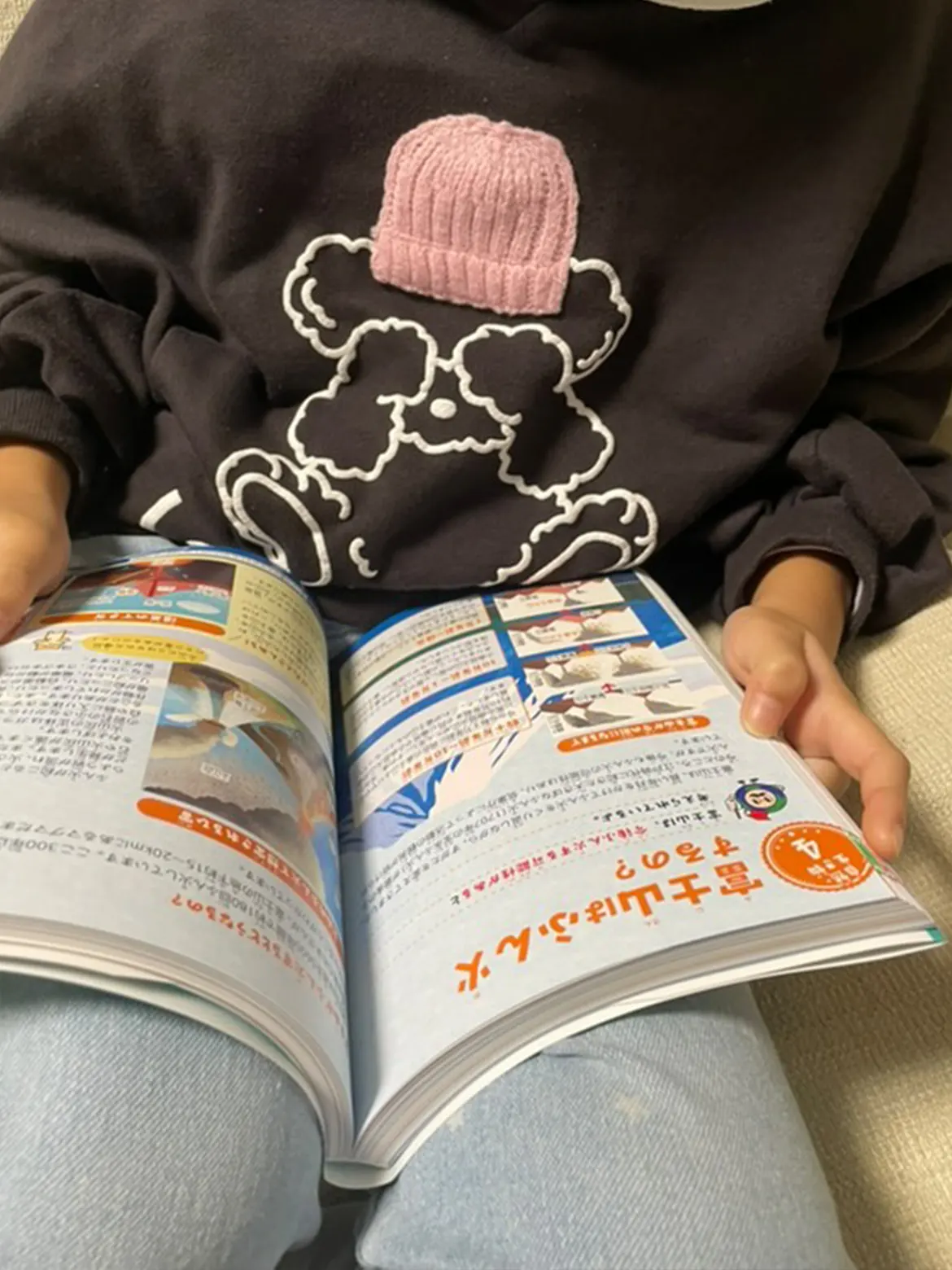 「世界で一番くさい食べ物はなに?」「クジラを食べてはいけないの?」「人間の近くにいるクマがふえているの?」など、身近な食べ物やニュースで耳にするテーマが多く、「どうして?」「なぜそうなるの?」と自分から質問する姿が見られました。普段の生活やニュースとつながる内容が多い点が、子どもの好奇心を刺激しているように感じます。また、"スーパーマーケットの配置"など実際に社会科の授業で学んだ内容と結びつくトピックも多く、教室での学びを生活の中で再発見することができています。扱われているテーマが幅広く、大人が読んでも思わず「なるほど」とうなずくような内容ばかりで、親子で一緒に読む時間がとても充実しています。