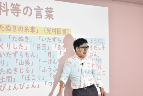 最後に、当日の司会進行を務めてくれた永峰編集員より『国語力を高めることば新辞典』の特徴を紹介。 図やクイズを交えながら、ひとつの言葉にいろいろな意味があることや、新しい言葉をつなげて広げていくイメージを感じてもらいました。